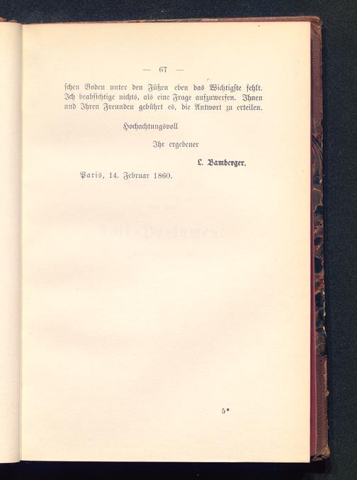 scheu Boden unter den Fußen eben das Wichtigste fehlt.Ich beabsichtige nichts, als eine Frage aufzuwerfen. Ihnenund Ihren Freunden gebührt es, die Autwort zu erteilen.HochachtungsvollIhr ergebenerL. Lamberger.Paris , 14. Februar 1860.