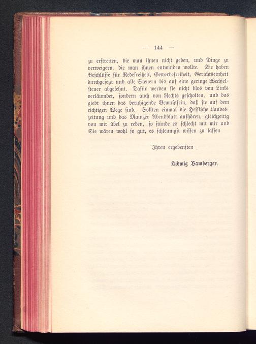 zu erstreiten, die man ihnen nicht geben, und Dinge zuverweigern, die man ihnen entwinden wollte. Sie habenBeschlüsse für Redefreiheit, Gewerbefreiheit, Gerichtscinheitdurchgesetzt und alle Steuern bis anf eine geringe Wechsel-steuer abgelehnt. Dafür werden sie nicht blos von Linksverläumdet, sondern auch von Rechts gescholten, und dasgiebt ihnen das beruhigende Bewußtsein, daß sie auf demrichtigen Wege sind. Sollten einmal die Hessische Landes-zeitung und das Mainzer Abendblatt aufhören, gleichzeitigvon mir übel zu reden, fo stünde es schlecht mit mir nndSie wären wohl so gut, es schleunigst wissen zu lassen