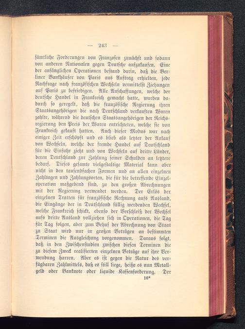 sämtliche Forderungen von Franzosen zunächst und sodannvon anderen Nationalen gegen Deutsche aufzukaufen. Eineder anfänglichen Operationen bestand darin, daß die Ber-liner Bankhäuser von Paris aus Auftrag erhielten, jedeNachfrage nach französischen Wechseln vermittelst Ziehuugeuauf Paris zu befriedige». Alle Auschaffuugeu, welche derdeutsche Handel in Frankreich gemacht hatte, wurden da-durch so geregelt, daß die französische Regierung ihrenStaatsangehörigen die uach Deutschlaud verkauften Warenzahlte, während die deutschen Staatsangehörigen der Reichs-regierung dcu Preis der Wareu entrichteten, welche sie vonFrankreich gekauft hatten. Nnch dieser Modus war nacheiniger Zeit erschöpft uud es blieb als letzter der Aukaufvon Wechseln, welche der fremde Handel auf Deutschlaudfür die Einfuhr zieht und von Wechseln auf dritte Länder,deren Deutschlaud zur Zahlung seiner Schulden an letzterebedarf. Dieses gesamte vielgestaltige Material kann abernicht in den tauseudfacheu Formen und an allen einzelnenZahltagen und Zahlungsorte!:, die für die betreffende Einzel-operation maßgebend sind, zu deu großen Abrechnuugeumit der Regierung verwendet werden. Der Erlös dereinzelnen Tratten für französische Rechnung aufs Ausland,die Eingänge der in Deutschland fällig werdenden Wechsel,welche Frankreich schickt, ebenso der Verschleiß der Wechselaufs dritte Ausland vollziehen sich in Operationen, die Tagfür Tag folgen, aber zum Behuf der Abrechnung von Staatzu Staat wird nur in großen Beträgen an bestimmtenTerminen die Ausgleichung vorgenommen. Daraus folgt,daß in den Zwischenftadien zwischen diesen Terminen diezu diesem Zweck realisierten einzelnen Beträge aus ihre Ver-wendung harren. Aber es ist gegen die Natur des ver-fügbaren Zahlmittels, daß es still liege, heiße es nun Metall-geld oder Banknote oder liquide Kassenforderung. Der