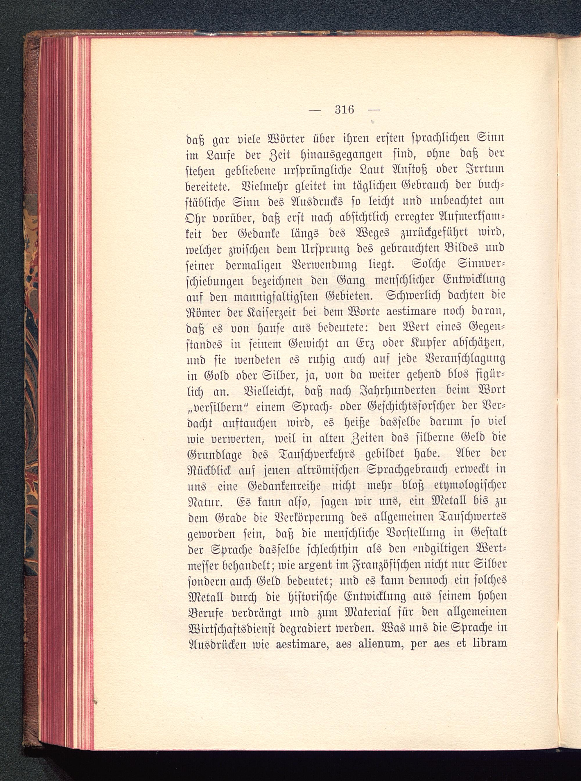 daß gar viele Wörter über ihren ersten sprachlichen Sinnim Laufe der Zeit hinausgegangen sind, ohne daß derstehen gebliebene ursprüngliche Laut Anstoß oder Irrtumbereitete. Vielmehr gleitet im täglichen Gebrauch der buch-stäbliche Sinn des Ausdrucks so leicht und unbeachtet amOhr vorüber, daß erst nach absichtlich erregter Aufmerksam-keit der Gedanke längs des Weges zurückgeführt wird,welcher zwischen dem Ursprung des gebrauchten Bildes undseiner dermaligen Verwendung liegt. Solche Sinnver-schiebungen bezeichnen den Gang menschlicher Entwicklungauf den mannigfaltigsten Gebieten. Schwerlich dachten dieRömer der Kaiserzeit bei dem Worte ^sstiing-rs noch daran,daß es von Hause aus bedeutete: den Wert eines Gegen-standes in seinem Gewicht an Erz oder Kupfer abschätzen,und sie wendeten es ruhig auch auf jede Veranschlagungin Gold oder Silber, ja, von da weiter gehend blos figür-lich an. Vielleicht, daß nach Jahrhunderten beim Wort„versilbern" einem Sprach- oder Geschichtsforscher der Ver-dacht auftauchen wird, es heiße dasselbe darum so vielwie verwerten, weil in alten Zeiten das silberne Geld dieGrundlage des Tauschverkehrs gebildet habe. Aber derRückblick auf jenen altrömischen Sprachgebrauch erweckt inuns eine Gedankenreihe nicht mehr bloß etymologischerNatur. Es kann also, sagen wir uns, ein Metall bis zudem Grade die Verkörperung des allgemeinen Tauschwertesgeworden sein, daß die menschliche Vorstellung in Gestaltder Sprache dasselbe schlechthin als den ?ndgiltigen Wert-messer behandelt; wie arAsut, im Französischen nicht nur Silbersondern auch Geld bedeutet; und es kann dennoch ein solchesMetall durch die historische Entwicklung aus seinem hohenBerufe verdrängt und zum Material für den allgemeinenWirtschaftsdicnst degradiert werden. Was uns die Sprache inAusdrücken wie akstiumrö, Äks aliönuin, xsr ass et lidrain