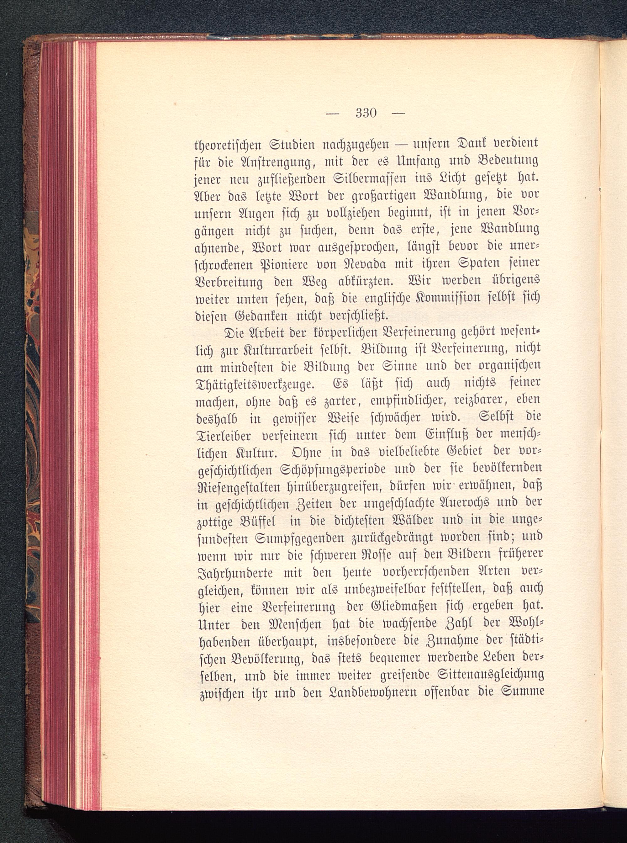 Die Arbeit der körperlichen Verfeinerung gehört wesent-lich zur Kulturarbeit selbst. Bildung ist Verfeinerung, nichtam mindesten die Bildung der Sinne und der organischenThätigkeitswerkzeuge. Es läßt sich auch nichts feinermachen, ohne daß es zarter, empfindlicher, reizbarer, ebendeshalb in gewisser Weise schwächer wird. Selbst dieTierleiber verfeinern sich unter dem Einfluß der mensch-lichen Kultur. Ohne in das vielbeliebte Gebiet der vor-geschichtlichen Schöpfungsperiode uud der sie bevölkerndenNiesengestalten hinüberzugreifen, dürfen wir erwähnen, daßin geschichtlichen Zeiten der ungeschlachte Auerochs und derzottige Büffel in die dichtesten Wälder und in die unge-sundesten Sumpfgegenden zurückgedrängt worden sind; undwenn wir nur die schweren Rosse auf den Bildern frühererJahrhunderte mit den heute vorherrschenden Arten ver-gleichen, können wir als unbezweifelbar feststellen, daß auchhier eine Verfeinerung der Gliedmaßen sich ergeben hat.Unter den Menschen hat die wachsende Zahl der Wohl-habenden überhaupt, insbesondere die Zunahme der städti-schen Bevölkerung, das stets bequemer werdende Leben der-selben, und die immer weiter greifende Sittenausgleichungzwischen ihr und den Landbewohnern offenbar die Summe