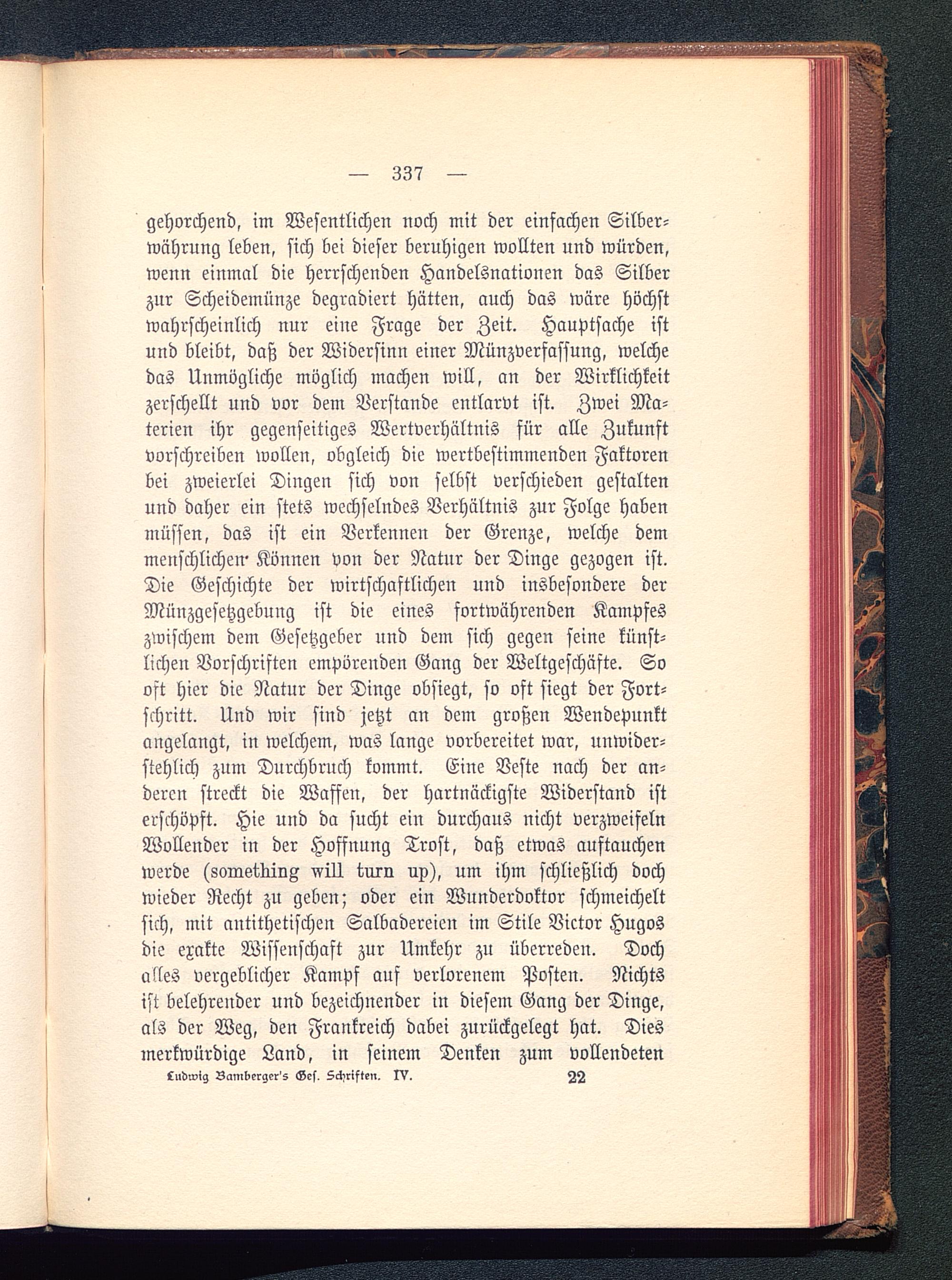gehorchend, im Wesentlichen noch mit der einfachen Silber-währung leben, sich bei dieser beruhigen wollten und würden,wenn einmal die herrschenden Handelsnationen das Silberzur Scheidemünze degradiert hätten, auch das wäre höchstwahrscheinlich nur eine Frage der Zeit. Hauptsache istund bleibt, daß der Widersinn einer Münzverfassung, welchedas Unmögliche möglich machen will, an der Wirklichkeitzerschellt und vor dem Verstände entlarvt ist. Zwei Ma-terien ihr gegenseitiges Wertverhältnis für alle Zukunftvorschreiben wollen, obgleich die wertbestimmenden Faktorenbei zweierlei Dingen sich von selbst verschieden gestaltenund daher ein stets wechselndes Verhältnis zur Folge habenmüssen, das ist ein Verkennen der Grenze, welche demmenschlichen- Können von der Natur der Dinge gezogen ist.Die Geschichte der wirtschaftlichen und insbesondere derMünzgesetzgebung ist die eines fortwährenden Kampfeszwischem dem Gesetzgeber und dem sich gegen seine künst-lichen Vorschriften empörenden Gang der Weltgeschäfte. Sooft hier die Natur der Dinge obsiegt, so oft siegt der Fort-schritt. Und wir sind jetzt an dem großen Wendepunktangelangt, in welchem, was lange vorbereitet war, unwider-stehlich zum Durchbruch kommt. Eine Beste nach der an-deren streckt die Waffen, der hartnäckigste Widerstand isterschöpft. Hie und da sucht ein durchaus nicht verzweifelnWollender in der Hoffnung Trost, daß etwas auftauchenwerde (ZorasttiillA v?iI1 turu uv), um ihm schließlich dochwieder Recht zu geben; oder ein Wunderdoktor schmeicheltsich, mit antithetischen Salbadereien im Stile Victor Hugos die exakte Wissenschaft zur Umkehr zu überreden. Dochalles vergeblicher Kampf auf verlorenem Posten. Nichtsist belehrender und bezeichnender in diesem Gang der Dinge,als der Weg, den Frankreich dabei zurückgelegt hat. Diesmerkwürdige Land, in seinem Denken zum vollendeten