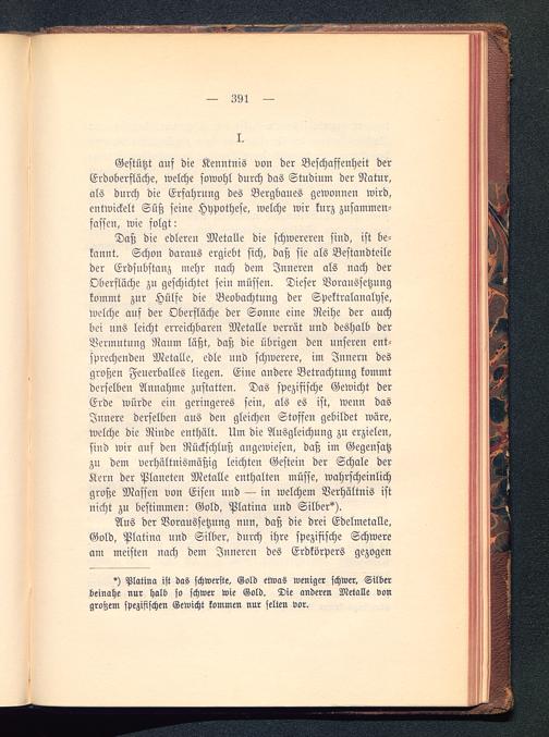 Aus der Voraussetzung nun, daß die drei Edelmetalle,Gold, Platina und Silber, durch ihre spezifische Schweream meisten nach dem Inneren des Erdkörpers gezogen