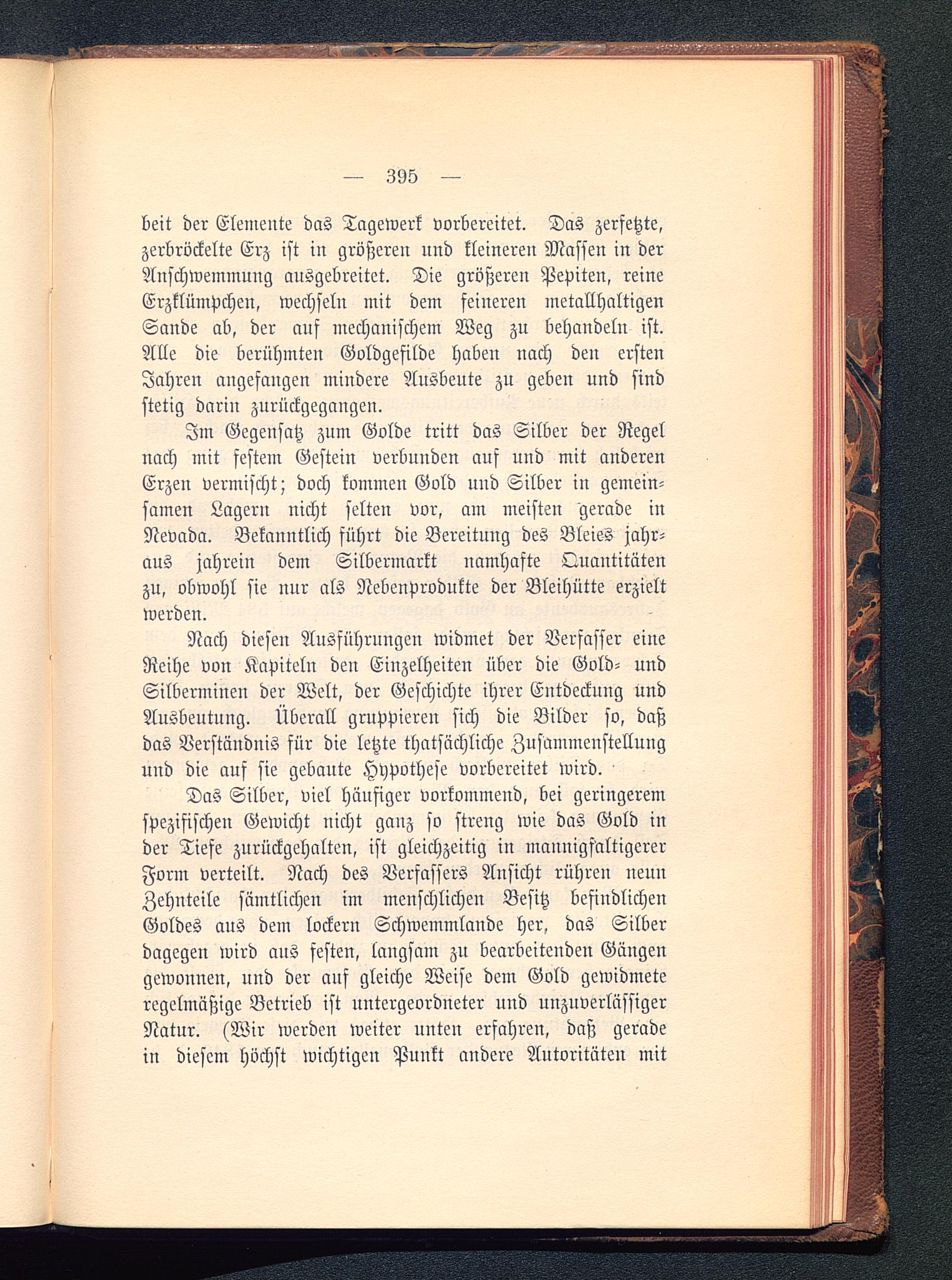 Im Gegensatz zum Golde tritt das Silber der Regelnach mit festem Gestein verbunden auf und mit anderenErzen vermischt; doch kommen Gold und Silber in gemein-samen Lagern nicht selten vor, am meisten gerade inNevada. Bekanntlich führt die Bereitung des Bleies jahr-aus jahrein dem Silbermarkt namhafte Quantitätenzu, obwohl sie nur als Nebenprodukte der Bleihütte erzieltwerden.