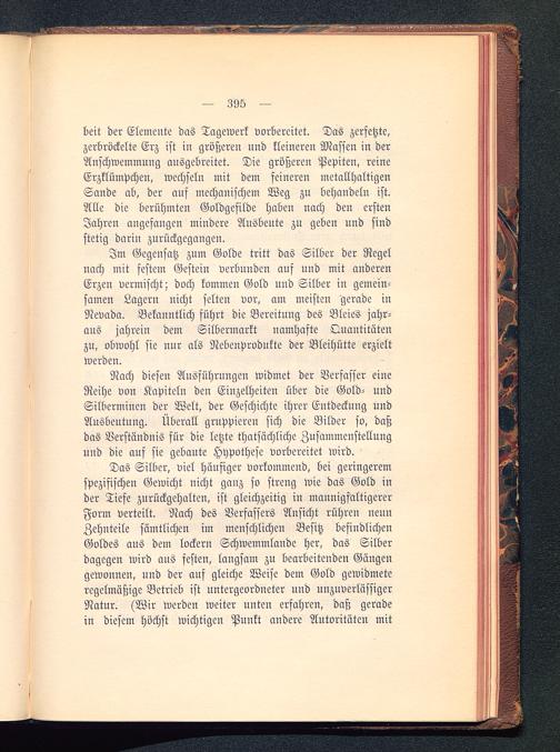 Nach diesen Ausführungen widmet der Verfasser eineReihe von Kapiteln den Einzelheiten über die Gold- undSilberminen der Welt, der Geschichte ihrer Entdeckung undAusbeutung. Überall gruppieren sich die Bilder so, daßdas Verständnis für die letzte thatsächliche Zusammenstellungund die auf sie gebaute Hypothese vorbereitet wird.
