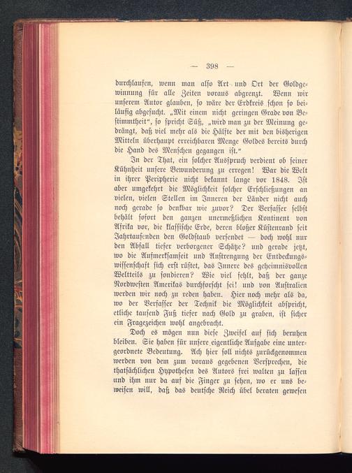 durchlaufen, wenn man also Art und Ort der Goldge-winnung für alle Zeiten voraus abgrenzt. Wenn wirunserem Autor glauben, so wäre der Erdkreis schon so bei-läufig abgesucht. „Mit einem nicht geringen Grade von Be-stimmtheit", so spricht Süß, „wird man zu der Meinung ge-drängt, daß viel mehr als die Hälfte der mit den bisherigenMitteln überhaupt erreichbaren Menge Goldes bereits dnrchdie Hand des Menschen gegangen ist."