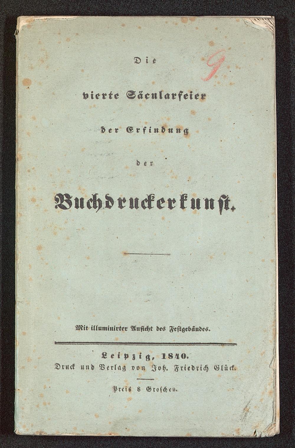 Beschreibung aller bei der vierten Säcularfeier der Erfindung der Buchdruckerkunst am 24. 25. und 26 Juni 1840 in Leipzig stattgefundenen Feierlichkeiten : ein Denkmal für die Mit- und Nachwelt