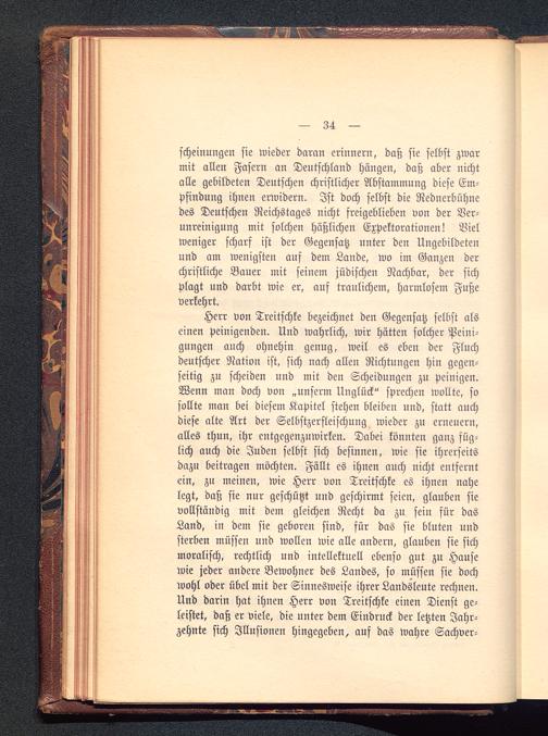 scheinungen sie wieder daran erinnern, daß sie selbst zwarmit allen Fasern an Deutschland hängen, daß aber nichtalle gebildeten Deutschen christlicher Abstammung diese Em-pfindung ihnen erwidern. Ist doch selbst die Rednerbühnedes Deutschen Reichstages nicht freigeblieben von der Ver-unreinigung mit solchen häßlichen Expektorationen! Vielweniger scharf ist der Gegensatz unter den Ungebildetenund am wenigsten auf dem Lande, wo im Ganzen derchristliche Bauer mit seinem jüdischen Nachbar, der sichplagt und darbt wie er, auf traulichem, harmlosem Fußeverkehrt.