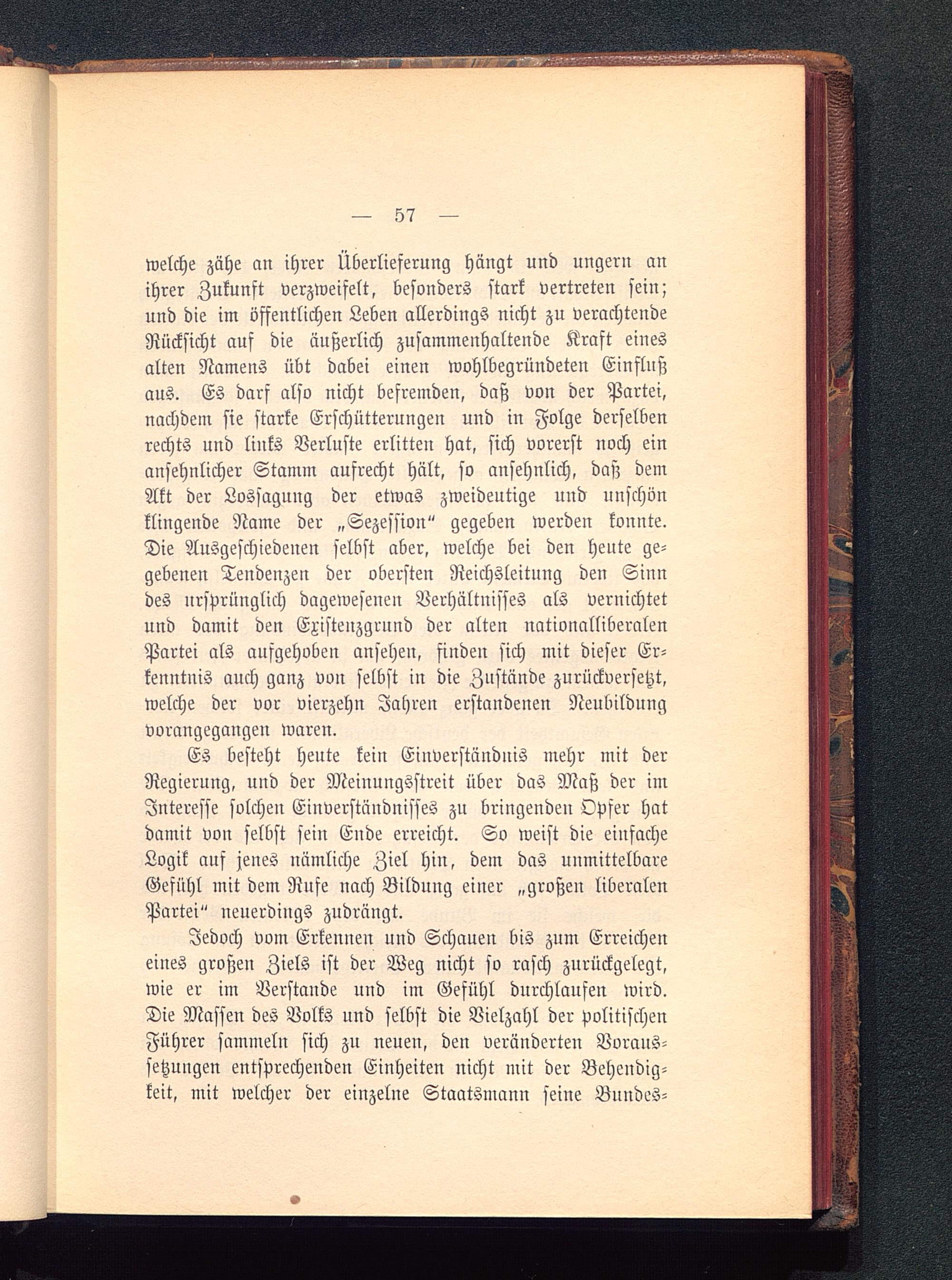 welche zähe an ihrer Überlieferung hängt und ungern anihrer Zukunft verzweifelt, besonders stark vertreten sein;und die im öffentlichen Leben allerdings nicht zu verachtendeRücksicht auf die äußerlich zusammenhaltende Kraft einesalten Namens übt dabei einen wohlbegründeten Einflußaus. Es darf also nicht befremden, daß von der Partei,nachdem sie starke Erschütterungen und in Folge derselbenrechts und links Verluste erlitten hat, sich vorerst noch einansehnlicher Stamm aufrecht hält, so ansehnlich, daß demAkt der Lossagung der etwas zweideutige und unschönklingende Name der „Sezession" gegeben werden konnte.Die Ausgeschiedenen selbst aber, welche bei den heute ge-gebenen Tendenzen der obersten Reichsleitnng den Sinndes ursprünglich dagewesenen Verhältnisses als vernichtetund damit den Existenzgrund der alten nationalliberalenPartei als aufgehoben ansehen, finden sich mit dieser Er-kenntnis auch ganz von selbst in die Zustände zurückversetzt,welche der vor vierzehn Jahren erstandenen Neubildungvorangegangen waren.