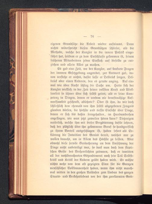 Es gab eine Zeit, wo der Kanzler, ans konkrete Fragender inneren Gesetzgebung angeredet, zur Antwort gab, da-von verstehe er nichts, dafür lasse er Delbrück sorgen, Del-brück oder einen Anderen, den es gerade anging. Auf ein-mal wie über Nacht schlug die Sache um. Hatte sich derKauzler wirklich in der Zeit seiner vollsten Kraft und Wirk-samkeit so schwer über sich selbst geirrt, als er seine Kom-petenz in Dingen, denen er vordem nie berufsmäßige Auf-merksamkeit geschenkt, ablehnte? Oder ist ihm, da wir dochschließlich dem ehemals von ihm selbst abgegebenen Zenguisglaubeu dürfen, die höchste und tiefste Einsicht über Dinge,denen er sich bis dahin ferngehalten, im Handumdrehenangeflogen, wie man jetzt zuweilen hören kann? Diejenigennatürlich, welche ihm mit dieser Vergötterung dafür lohnen,daß der plötzlich über ihn gekommene Berns so handgreiflichzu ihrem Vorteil ausgeschlagen ist, haben sofort als Er-klärung die Intuition des Genies bereit, welches nur zuwollen braucht, um in Allem das Höchste zn leisten. Aberobwohl diese servile Beräucherung an dem Umschwung derDinge nicht uubeteiligt war, so darf man doch dem skepti-schen Geiste des Verherrlichten zutranen, daß er inmittenall der wohlberechneten Götzendieners noch sein Teil Selbst-kritik und Kritik der Andern geübt haben wird. Er müßtenichts mehr von dem oft gezeigten Sinn für die Grenzenmenschlicher Vollkommenheit haben, wenn ihm nicht manch-mal mitten in den großen Anläufen zum Umbau des gauzeuStaats- uud Verkehrslebens vor der ihm Anerkannten Gott -