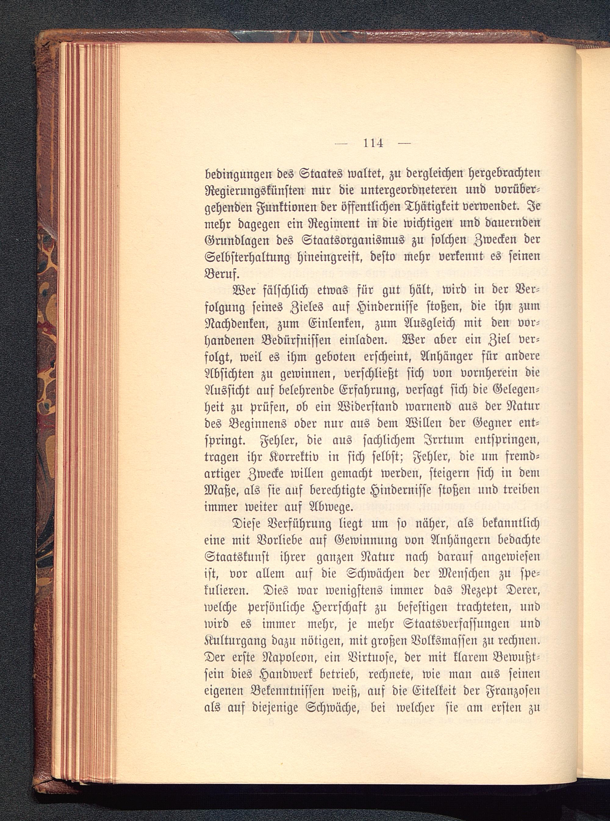 Diese Verführung liegt um so näher, als bekanntlicheine mit Vorliebe auf Gewinnung von Anhängern bedachteStaatskunst ihrer ganzen Natur nach darauf angewiesenist, vor allem auf die Schwächen der Menschen zu spe-kulieren. Dies war wenigstens immer das Rezept Derer,welche persönliche Herrschaft zu befestigen trachteten, undwird es immer mehr, je mehr Staatsverfassungen undÄ'ulturgang dazu nötigen, mit großen Volksmasseu zu rechnen.Der erste Napoleon, ein Virtuose, der mit klarem Bewußt'sein dies Handwerk betrieb, rechnete, wie man aus seineueigenen Bekenntnissen weiß, auf die Eitelkeit der Franzosenals auf diejenige Schwäche, bei welcher sie am ersten zu