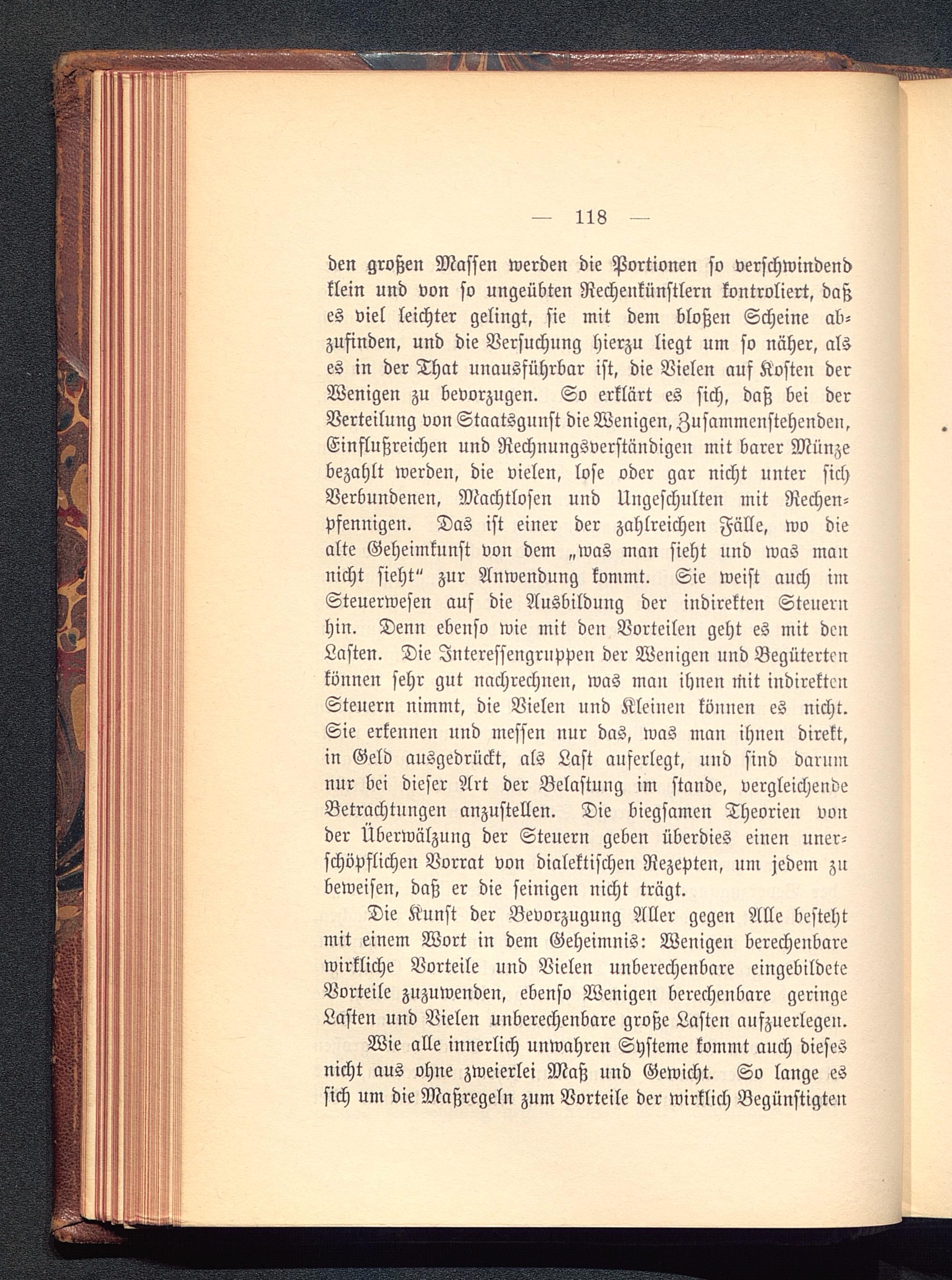 Die Kunst der Bevorzugung Aller gegen Alle bestehtmit einem Wort in dem Geheimnis: Wenigen berechenbarewirkliche Vorteile und Vielen unberechenbare eingebildeteVorteile zuzuwenden, ebenso Wenigen berechenbare geringeLasten und Vielen unberechenbare große Lasten aufzuerlegen.