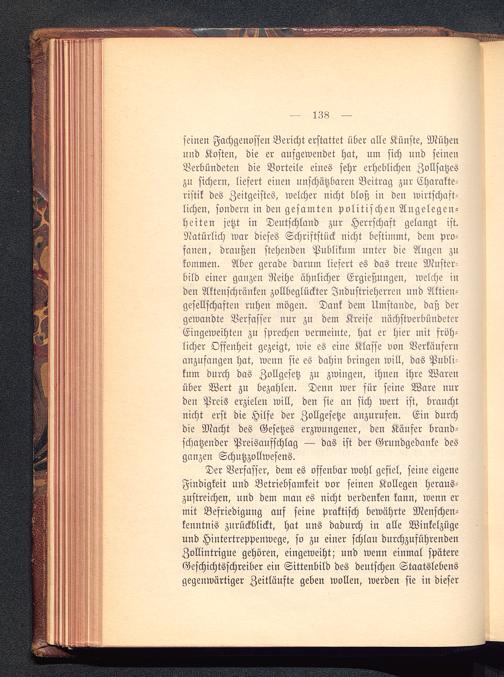 seinen Fachgenossen Bericht erstattet über alle Künste, Mühenund Kosten, die er ausgewendet hat, um sich und seinenVerbündeten die Vorteile eiues sehr erheblichen Zollsatzeszu sichern, liefert einen unschätzbaren Beitrag zur Charakte-ristik des Zeitgeistes, welcher uicht bloß in den wirtschaft-lichen, sondern in den gesamten politischen Angelegen-heiten jetzt in Deutschland zur Herrschaft gelangt ist.Natürlich war dieses Schriftstück nicht bestimmt, dem pro-fanen, draußen stehenden Publikum unter die Augen zukommen. Aber gerade darum liefert es das treue Muster-bild einer ganzen Reihe ähnlicher Ergießungen, welche inden Aktenschränken zollbeglückter Jndustrieherren und Aktien-gesellschaften ruhen mögen. Dank dem Umstände, daß dergewandte Verfasser nur zu dem Kreise nächstverbüudeterEingeweihten zu sprechen vermeinte, hat er hier mit fröh-licher Offenheit gezeigt, wie es eine Klasse von Verkäufernanzufangen hat, wenn sie es dahin bringen will, das Publi-kum durch das Zollgesetz zu zwingen, ihnen ihre Warenüber Wert zu bezahlen. Denn wer für seine Ware nurdeu Preis erzielen will, den sie an sich wert ist, brauchtnicht erst die Hilfe der Zollgesetze anzurufen. Ein durchdie Macht des Gesetzes erzwungener, den Käufer brand-schatzender Preisaufschlag — das ist der Grundgedanke desganzen Schutzzollwesens.