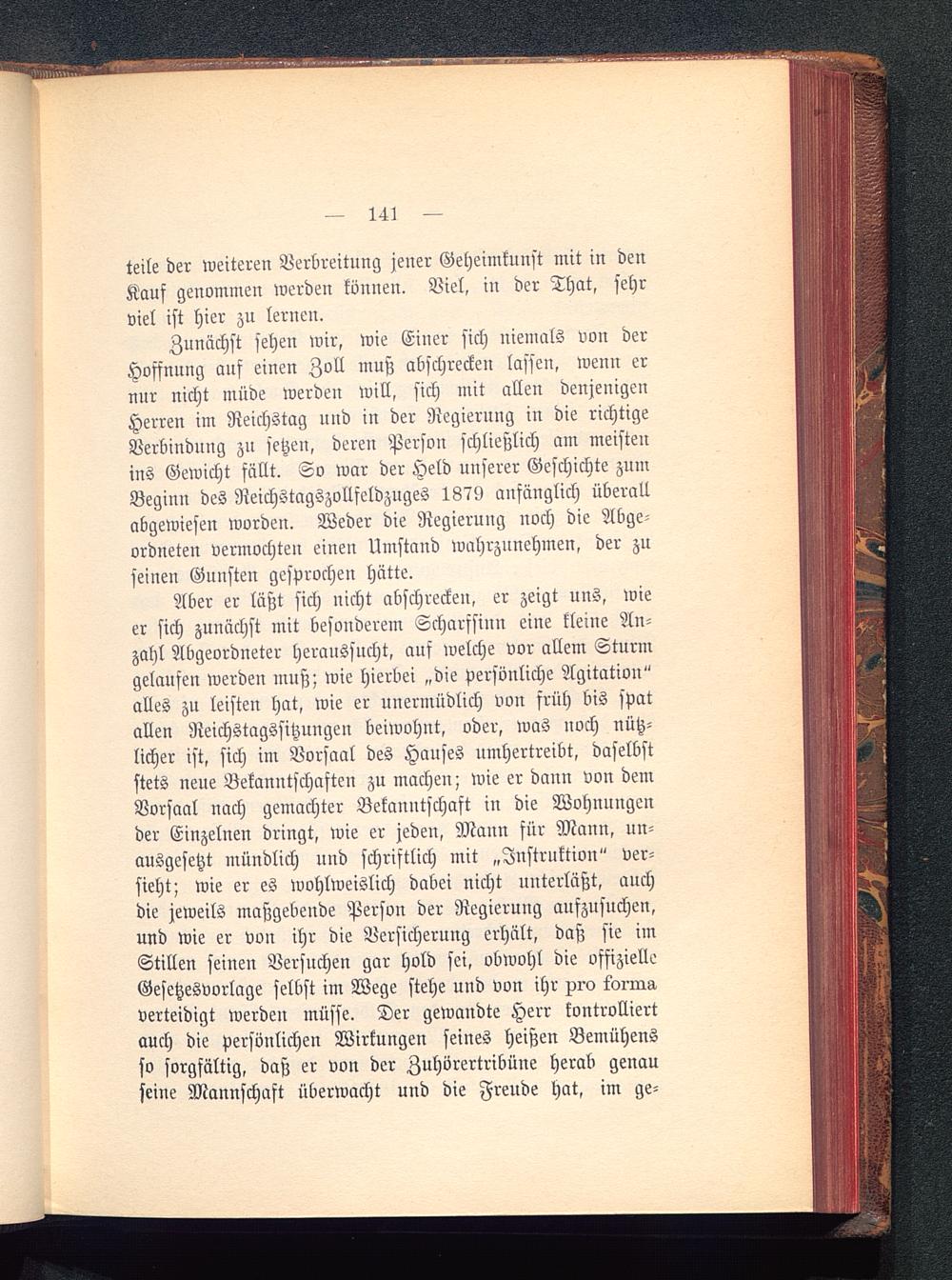 Zunächst sehen wir, wie Einer sich niemals von derHoffnung auf einen Zoll muß abschrecken lassen, wenn ernur nicht »lüde werden will, sich mit allen denjenigenHerren im Reichstag und in der Regierung in die richtigeVerbindung zu setzen, deren Person schließlich am meistenins Gewicht fällt. So war der Held unserer Geschichte zumBeginn des Reichstagszollfeldzuges 1879 anfänglich überallabgewiesen worden. Weder die Regieruug uoch die Abge-ordneten vermochten einen Umstand wahrzunehmen, der zuseinen Gunsten gesprochen hätte.