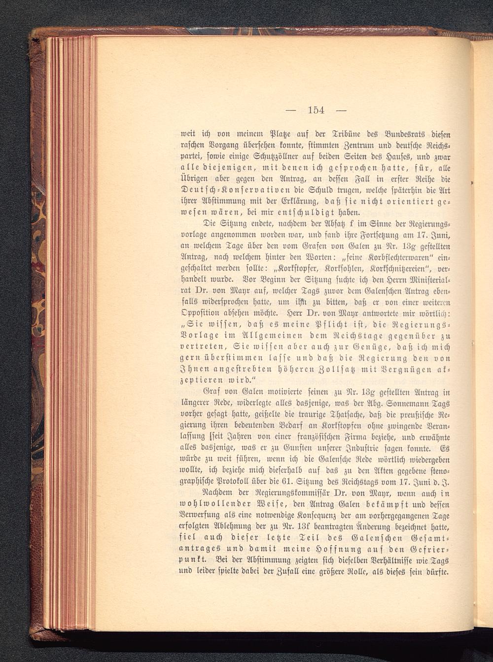 Die Sitzung endete, nachdem der Absatz k im Sinne der Regierungs-vorlage angenommen worden war, und fand ihre Fortsetzung am 17. Juni,an welchem Tage über den vom Grafen von Galen zu Nr. I3x gestelltenAntrag, nach welchem hinter den Worten: „feine Korbflechtcrwaren" ein-geschaltet werden sollte: „Korkstopfer, Korksohlen, Korkschnitzcreien", ver-handelt wurde. Vor Beginu der Sitzung suchte ich den Herrn Ministcrial-rat Dr. von Maur auf, welcher Tags zuvor dem Galcnschcn Antrag eben-falls widersprochen hatte, um M zu bitten, daß er von einer weiterenOpposition absehen möchte. Herr Dr. von Maur antwortete mir wörtlich:„Sie wissen, daß es meine Pflicht ist, die Rcgieruugs-Vo rlage im Allgemeinen dem Reichstage gegenüber zuvertreten, Sie wissen aber auch zur Genüge, daß ich michgern überstimmen lasse und daß die Regierung den vonIhnen angestrebten höheren Zollsatz mit Vergnügen ak-zeptieren wird."