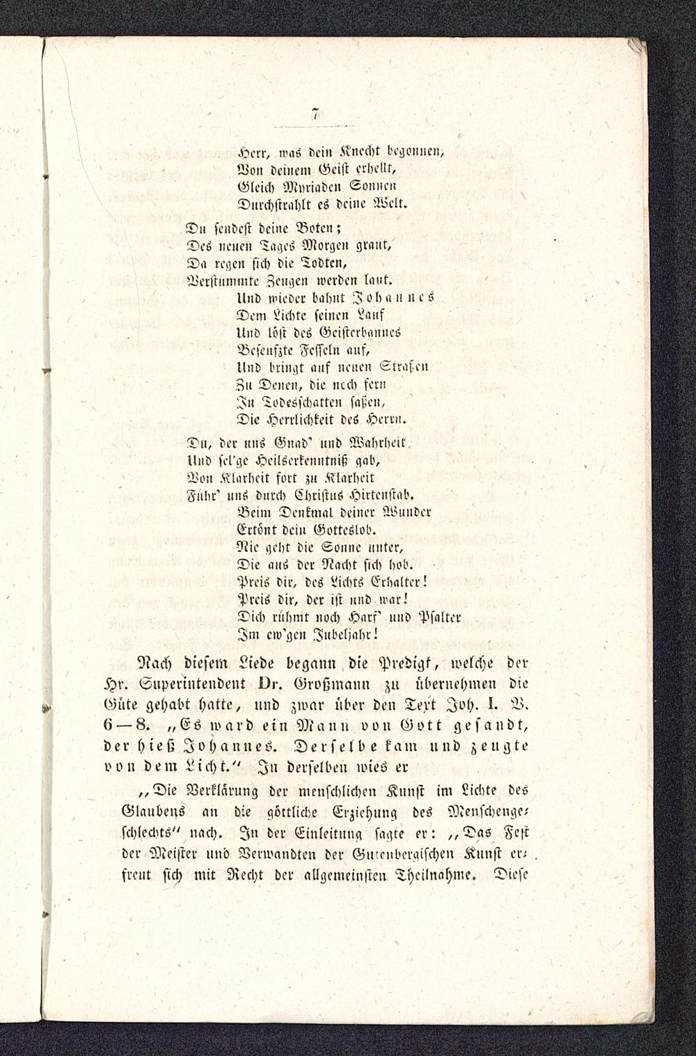 Nach diesem Liede begann die Predigt, welche derHr. Superintendent Dr, Großmann JÜ übernehmen dieGüte gehabt hatte, und zwar über den Text Ivh. !. V.6 — 8. „Es ward ei n M a n n v.W Gott gesandt,der hieß Johannes. Derselbe k a in und zeugtevon dem Licht/' In derselben ivieS er