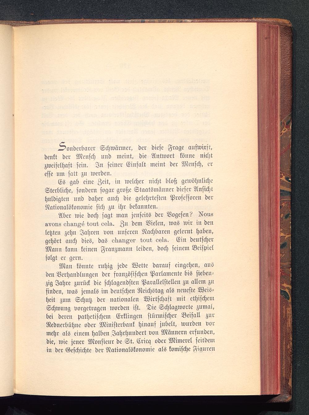 Man könnte ruhig jede Wette darauf eingehen, ausden Verhandlungen der französischen Parlamente bis sieben-zig Jahre zurück die schlagendsten Parallelstellen zu allem zufindeu, was jemals im deutscheu Reichstag als neueste Weis-heit zum Schutz der nationalen Wirtschaft mit ethischen:Schwung vorgetragen worden ist. Die Schlagworte zumal,bei deren pathetischem Erklingen stürmischer Beifall zurReduerbühne oder Miuisterbauk hinauf jubelt, wurden vormehr als einem halben Jahrhundert vvu Männern erfunden,die, wie jener Monsienr de St. Erica oder Mimerel seitdemin der Geschichte der Nationalökonomie als komische Figuren