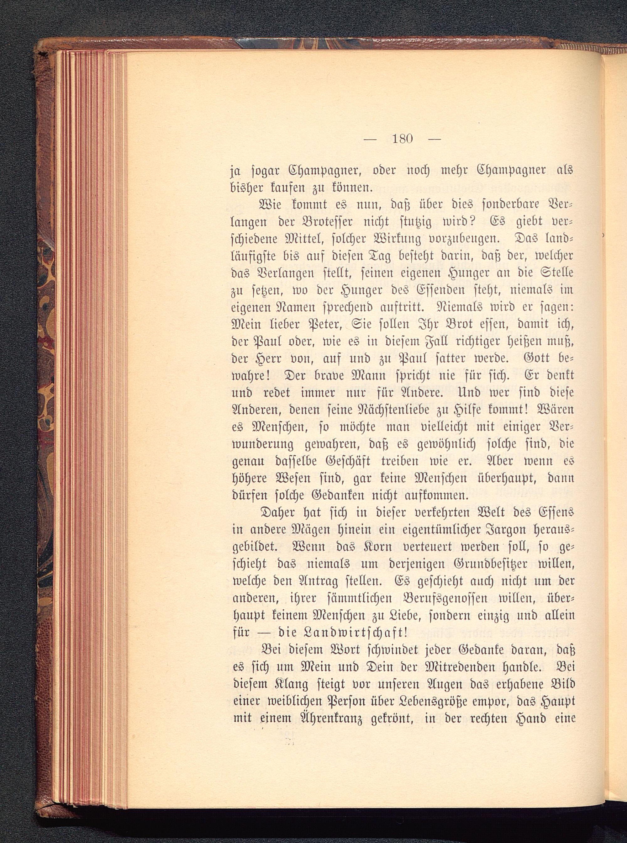 Bei diesem Wort schwindet jeder Gedanke daran, daßes sich um Mein und Dein der Mitredenden handle. Beidiesem Klang steigt vor unseren Augen das erhabene Bildeiner weiblichen Person über Lebensgröße empor, das Hauptmit einem Ährenkranz gekrönt, in der rechten Hand eine