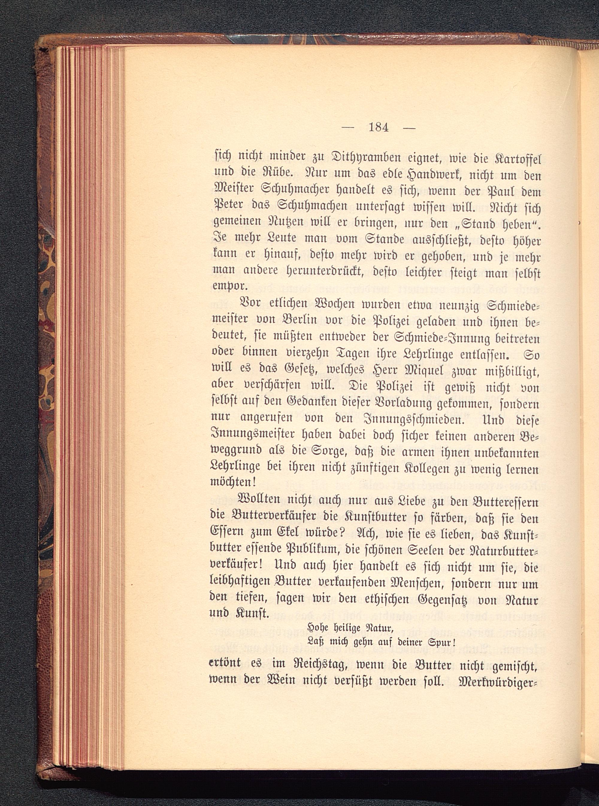 ertönt es im Reichstag, wenn die Butter nicht gemischt,wenn der Wein nicht versüßt werden soll. Merkwürdiger-