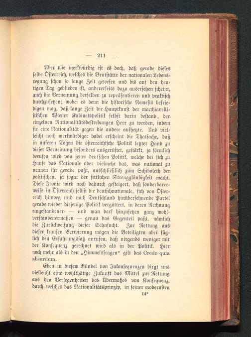 Eben in diesem Bündel von Inkonsequenzen birgt unsvielleicht eine wohlthätige Zukunft das Mittel zur Rettungaus den Verlegenheiten des Übermaßes von Konsequenz,durch welches das Natioualitätsprinzip, in seiner modernsten