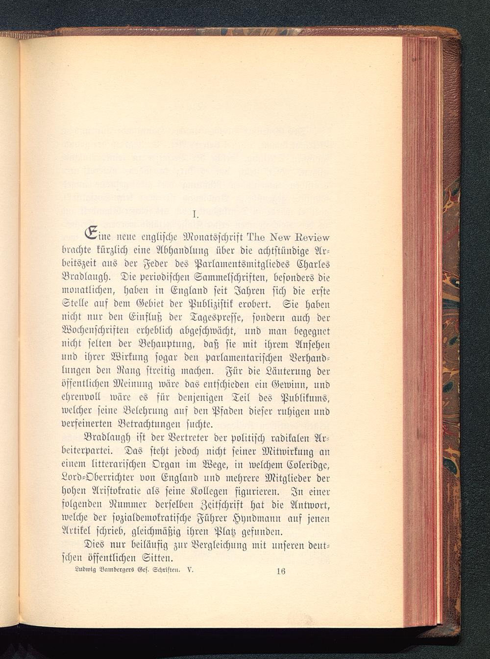 ine neue englische Monatsschrift "Ilw Nsvisvvbrachte kürzlich eine Abhandlung über die achtstündige Ar-beitszeit ans der Feder des Parlamentsmitgliedes CharlesBradlnngh. Die periodischen Sammelschriften, besonders diemonatlichen, haben in England seit Jahren sich die erstestelle auf dem Gebiet der Publizistik erobert. Sie habennicht nur den Einfluß der Tagespresse, sondern auch derWochenschriften erheblich abgeschwächt, und man begegnetnicht selten der Behauptung, daß sie mit ihrem Ansehenuud ihrer Wirkung sogar den Parlamentarische« Verhand-lungen den Rang streitig macheu. Für die Läuterung deröffentlichen Meinung wäre das entschieden ein Gewinn, undehrenvoll wäre es sür denjenigen Teil des Publikums,welcher seine Belehrnng ans den Pfaden dieser ruhigen undverfeinerten Betrachtungen suchte.