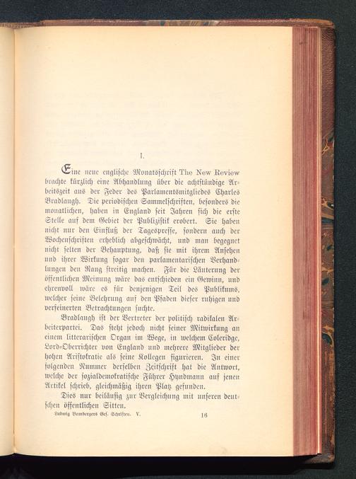 Bradlaugh ist der Vertreter der Politisch radikalen Ar-beiterpartei. Das steht jedoch nicht seiner Mitwirkung aneinem litterarischen Organ im Wege, in welchem Coleridge ,Lord-Oberrichter von England und mehrere Mitglieder derhohen Aristokratie als seine Kollegen figurieren. In einerfolgenden Nummer derselben Zeitschrift hat die Antwort,welche der sozialdemokratische Führer Hyudmauu auf jenenArtikel schrieb, gleichmäßig ihren Platz gefunden.