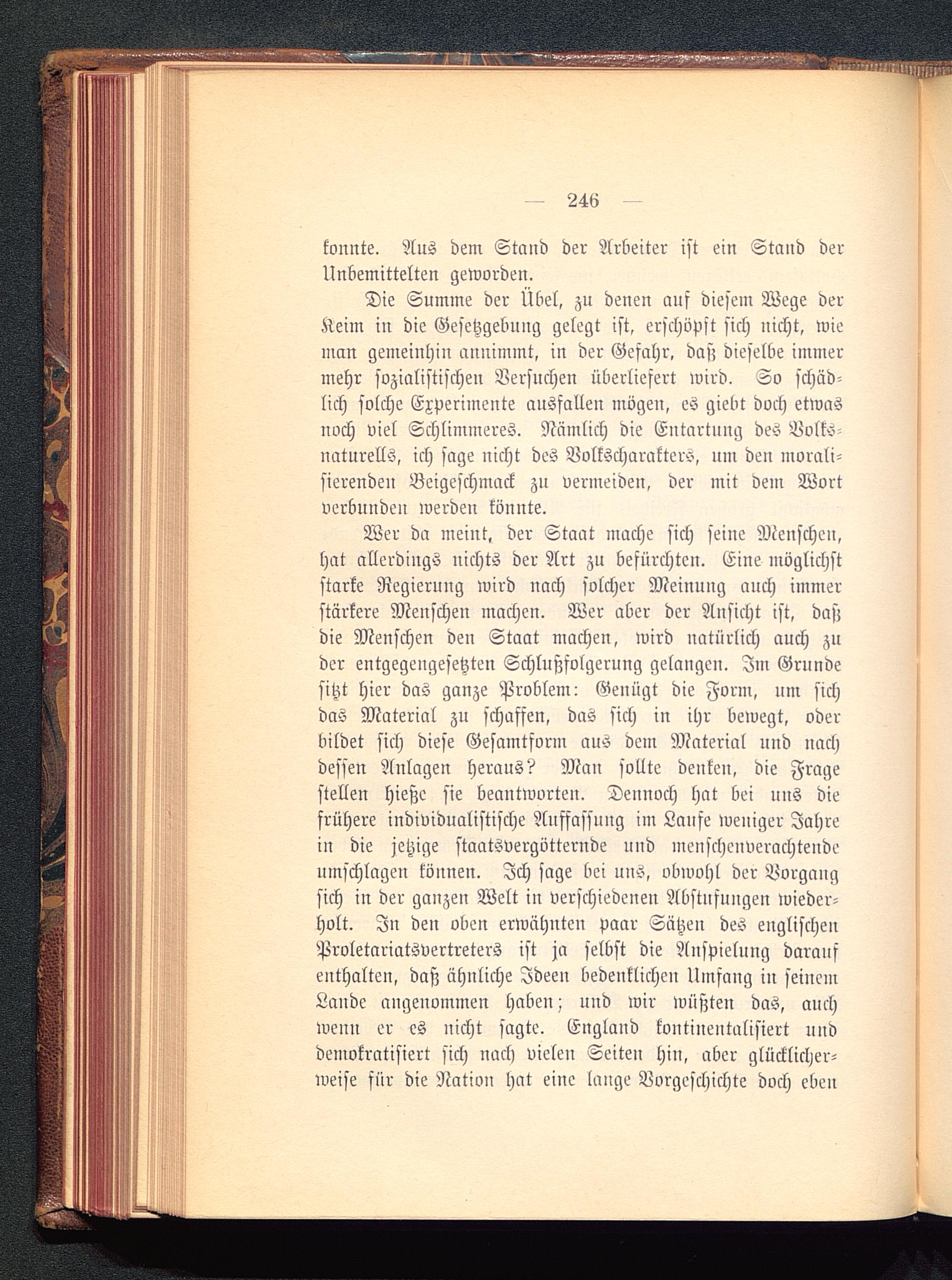 Die Summe der Übel, zu denen auf diesem Wege derKeim in die Gesetzgebung gelegt ist, erschöpft sich nicht, wieman gemeinhin annimmt, in der Gefahr, das; dieselbe immermehr sozialistischen Versuchen überliefert wird. So schäd-lich solche Experimente ausfallen mögen, es giebt doch etwasnoch viel Schlimmeres. Nämlich die Entartung des Bvll>Naturells, ich sage nicht des Nolkscharaktero, um den morali-sierenden Beigeschmack zu vermeiden, der mit dem Wortverbunden werden könnte.