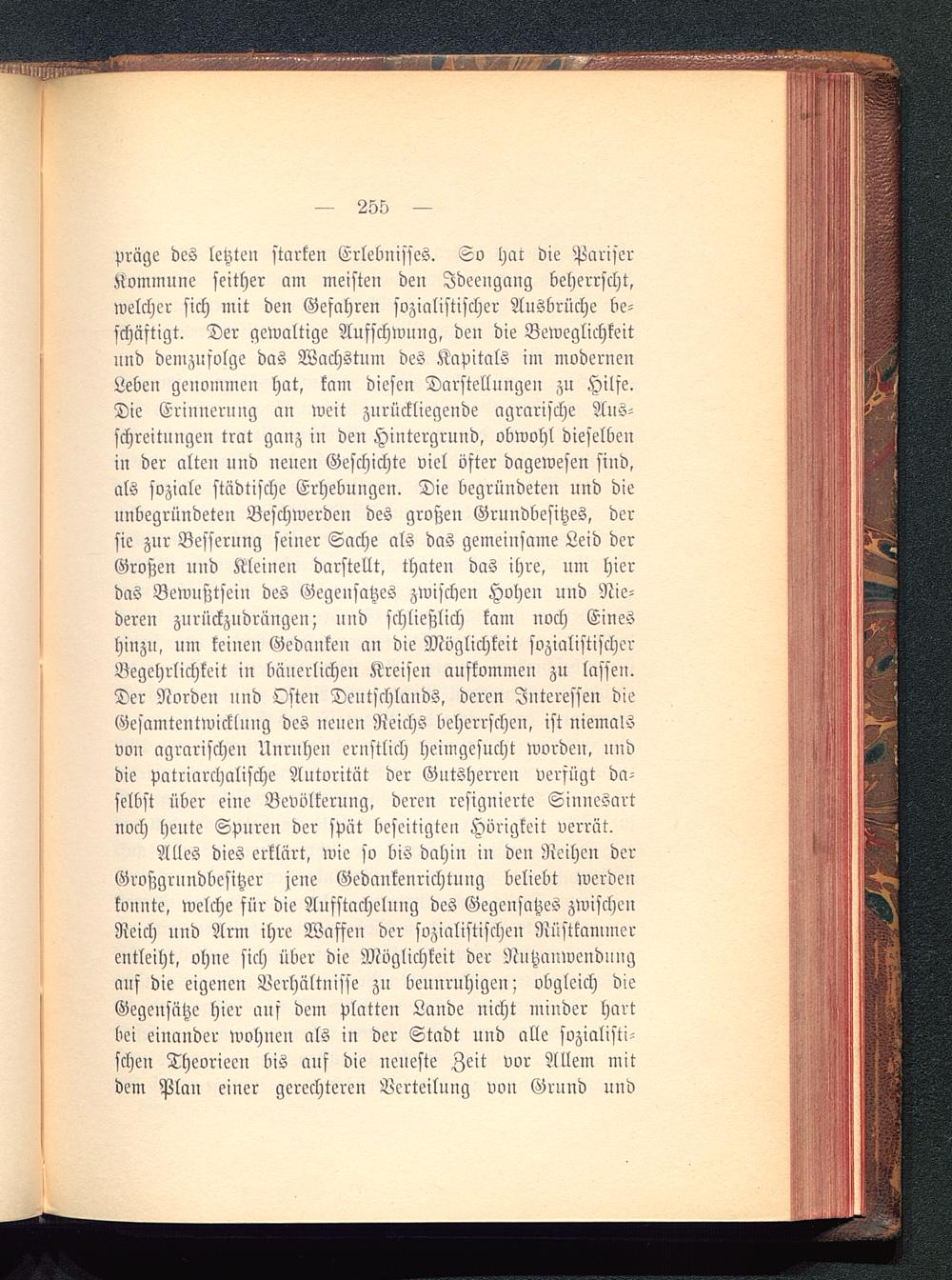 Alles dies erklärt, wie so bis dahin in den Reihen derGroßgrundbesitzer jene Gedaukenrichtung beliebt werdenkonnte, welche für die Aufstachelung des Gegensatzes zwischenReich und Arm ihre Waffen der sozialistischen Rüstkammerentleiht, ohne sich über die Möglichkeit der Nutzanwendungauf die eigenen Berhältnisfe zu beunruhigen; obgleich dieGegensätze hier auf dem Platten Lande nicht minder hartbei einander wohnen als in der Stadt und alle sozialisti-schen Theorieen bis auf die ueneste Zeit vor Allem mitdem Plan einer gerechteren Verteilung von Grund und