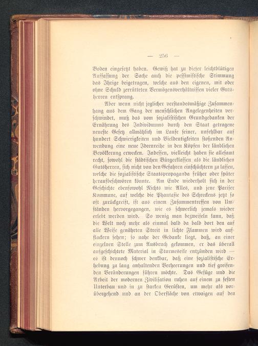 Aber wenn nicht jeglicher verstandesmäßige Zusammen-hang aus dem Gang der menschlichen Angelegenheiten ver-schwindet, muß das vom sozialistischen Grundgedanken derErnährung des Individuums durch den Staat getrageneneueste Gesetz allmählich im Lause seiner, nnsehlbar anshundert Schwierigkeiten uud Vieldeutigkeiten stoßenden An-wendung eine neue Jdeenreihe in den Köpfen der ländlichenBevölkerung erwecken. Indessen, vielleicht haben sie allesamtrecht, sowohl die städtischen Bürgerklassen als die ländlichenGutsherren, sich nicht von den Gefahren einschüchtern zu lassen,welche die sozialistische Staatspropaganda früher oder späterheraufbeschwören könnte. Am Ende wiederholt sich in derGeschichte ebensowohl Nichts wie Alles, nnd jene PariserÄommnne, auf welche die Phantasie des Schreckens jetzt sooft zurückgreift, ist aus einein Zusammentresfeu von Um-ständen hervorgegangen, wie es schwerlich jemals wiedererlebt werden wird. So wenig man bezweifeln kann, daßdie Welt noch mehr als einmal bald da bald dort den aufalle Weise genährten Streit in lichte Flammen wird auf-flackern sehen; so nahe der Gedanke liegt, daß, an einereinzelnen Stelle zum Ausbruch gekommen, er das überallaufgeschichtete Material in Sturmeseile eutzüudeu wird —eo ist dennoch schwer denkbar, daß eine sozialistische Er-hebung zn laug anhaltenden Verheerungen nnd tief greifen-den Veränderungen führen möchte. Das Gefüge nnd dieArbeit der modernen Zivilisation ruhen auf einem zu festenUnterbau und in zn starken Gerüsten, nm mehr als vor-übergehend nnd au der Oberfläche von etwaigen auf den