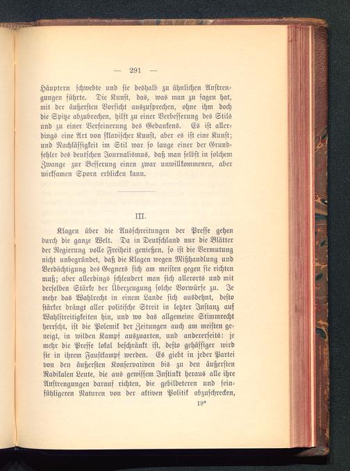 Häuptern schwebte und sie deshalb zu ähnlichen Anstren-gungen führte. Die Kunst, das, was man zu sagen hat,mit der äußersten Vorsicht auszusprechen, ohne ihm dochdie Spitze abzubrechen, hilft zu einer Verbesserung des Stilsund zu einer Verfeinerung des Gedankens. Es ist aller-dings eine Art von sklavischer Kunst, aber es ist eine Kunst;und Nachlässigkeit im Stil war so lange einer der Grund-fehler des deutschen Journalismus, daß man selbst in solchen:Zwange zur Besserung einen zwar unwillkommenen, aberwirksamen Sporn erblicken kann.