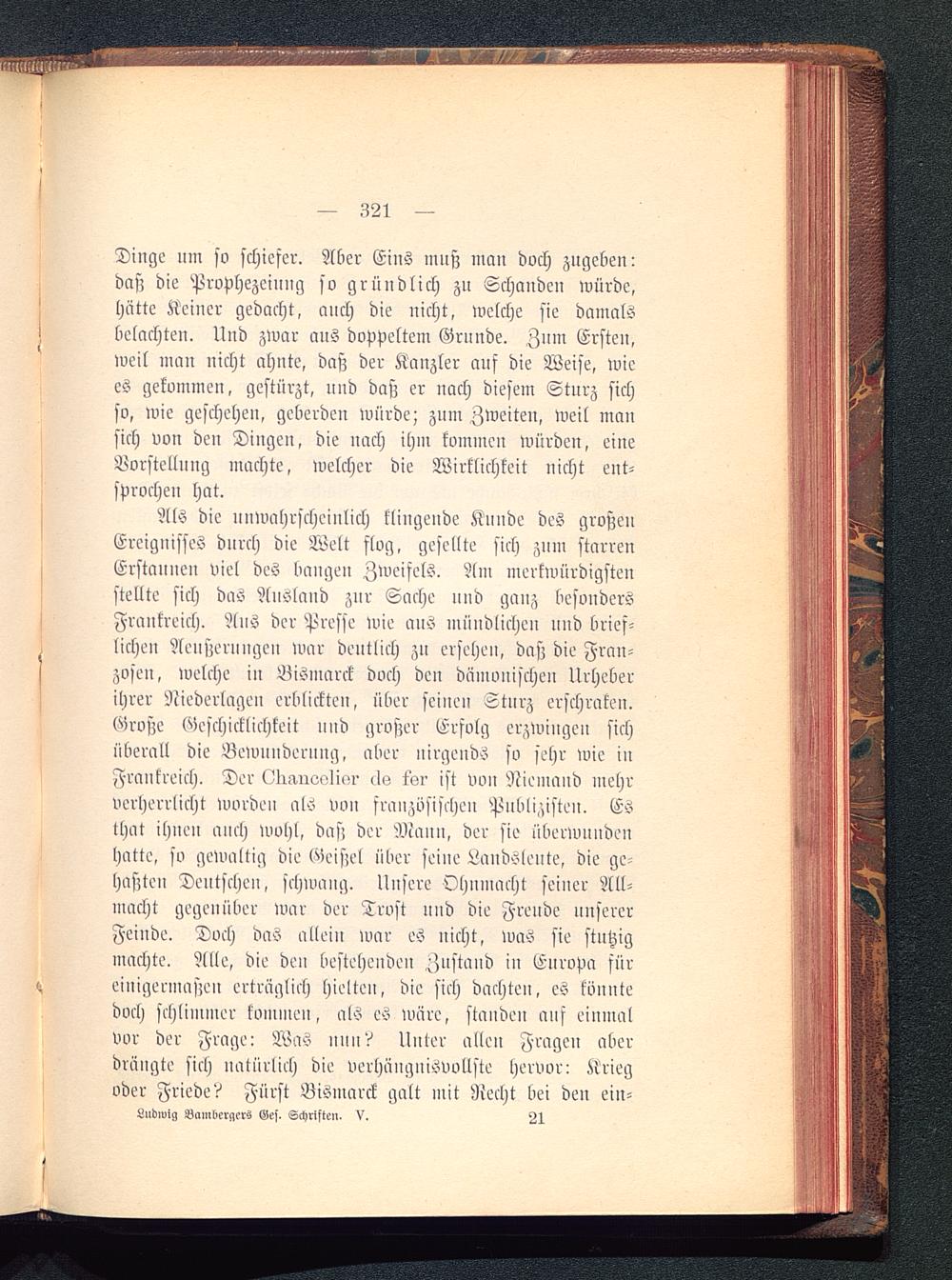 oder Friede? Fürst Bismarck galt mit Recht bei den ein-Ludwig BambcrqerS Ges. Schriften. V. 21
