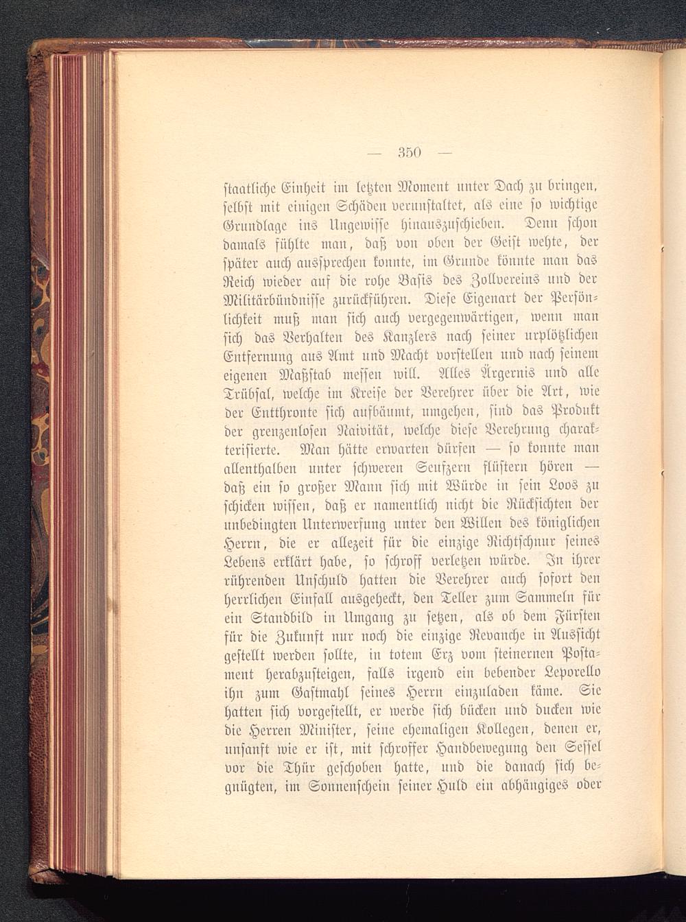 staatliche Einheit im letzteil Moment unter Dach zu bringen,selbst mit einigen Schäden verunstaltet, als eine so wichtigeGrundlage ins Ungewisse hinauszuschieben. Denn schondamals suhlte man, das; von oben der Geist wehte, derspäter auch aussprecheu konnte, im Grnnde konnte man dasReich wieder ans die rohe Basis des Zollvereins und derMilitärbündnisse zurückführen. Diese Eigenart der Persön-lichkeit muß man sich auch vergegenwärtigen, wenn mansich das Verhalten des Kanzlers nach seiner urplötzlichenEntfernuug aus Amt und Macht vorstellen nnd nach seinemeigenen Maßstab messen will. Alles Ärgernis nnd alleTrübsal, welche im Kreise der Verehrer über die Art, wieder Entthronte sich aufbäumt, umgehen, sind das Produktder greuzeuloseu Naivität, welche diese Verehrung charak-terisierte. Man hätte erwarten dürfen — so konnte manallenthalben unter schweren Seufzern flüstern hören —daß ein so großer Mauu sich mit Würde in sein Loos zuschicken wissen, daß er namentlich nicht die Rücksichten derunbedingten Unterwerfung unter den Willen des königlichenHerrn, die er allezeit für die einzige Richtschnur seinesLebens erklärt habe, so schroff verletzen würde. In ihrerrührenden Unschuld hatten die Verehrer auch sofort denherrlichen Einfall ausgeheckt, den Teller zum Sammeln fürein Staudbild iu Umgaug zu setzeu, als ob dem Fürsten für die Zukunft nur uoch die einzige Revanche in Aussichtgestellt werden sollte, in totem Erz vom steinernen Posta-ment herabznsteigcn, falls irgend ein bebender Lepvrelloihn zum Gastmahl seines Herrn einzuladen käme. Siehatten sich vorgestellt, er werde sich bücken uud ducken wiedie Herren Minister, seine ehemaligen Kollegen, denen er,unsanft wie er ist, mit schroffer Handbewegnng den Sesselvor die Thür geschoben hatte, nnd die danach sich be-gnügten, im Sonnenschein seiner Hnld ein abhängiges oder