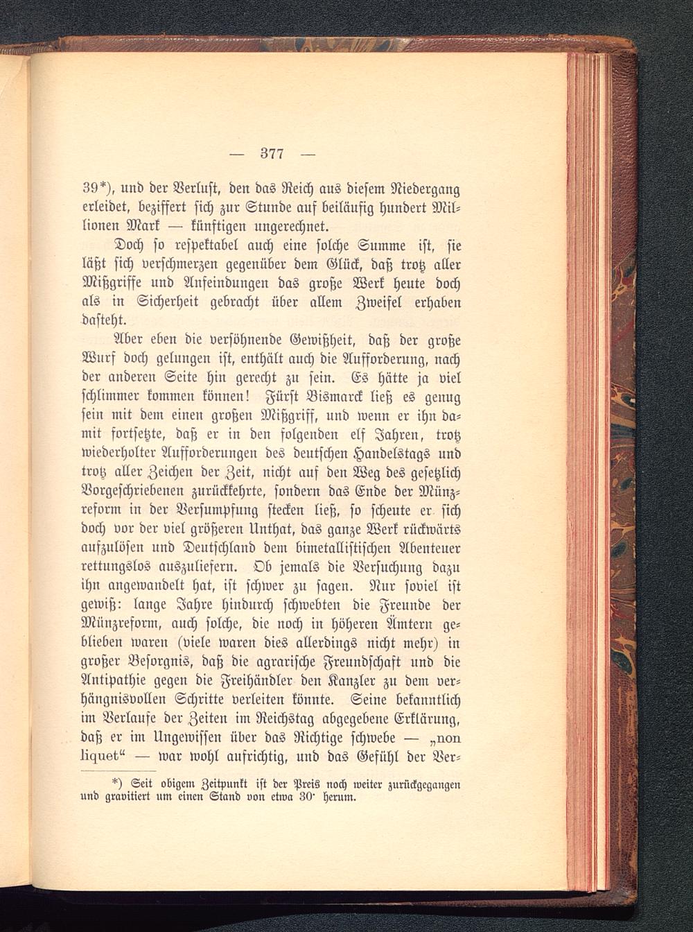 Aber eben die versöhnende Gewißheit, daß der großeWurf doch gelungen ist, enthält auch die Aufforderung, nachder anderen Seite hin gerecht zu sein. Es hätte ja vielschlimmer kommen können! Fürst Bismarck ließ es genugsein mit dem einen großen Mißgriff, und wenn er ihn da-mit fortsetzte, daß er in den folgenden elf Jahren, trotzwiederholter Aufforderungen des deutschen Handelstags undtrotz aller Zeichen der Zeit, nicht auf den Weg des gesetzlichVorgeschriebenen zurückkehrte, sondern das Ende der Münz-reform in der Versumpfung stecken ließ, so scheute er sichdoch vor der viel größeren Unthat, das ganze Werk rückwärtsaufzulösen und Deutschland dem bimetallistischen Abenteuerrettungslos auszuliefern. Ob jemals die Versuchung dazuihn angewandelt hat, ist schwer zu sagen. Nur soviel istgewiß: lange Jahre hindurch schwebten die Freunde derMünzreform, auch solche, die noch in höheren Ämtern ge-blieben waren (viele waren dies allerdings nicht mehr) ingroßer Besorgnis, daß die agrarische Freundschaft und dieAntipathie gegen die Freihändler den Kanzler zu dem ver-hängnisvollen Schritte verleiten könnte. Seine bekanntlichim Verlaufe der Zeiten im Reichstag abgegebene Erklärung,daß er im Ungewissen über das Richtige schwebe — „vonli^ust," — war wohl aufrichtig, und das Gefühl der Ver-