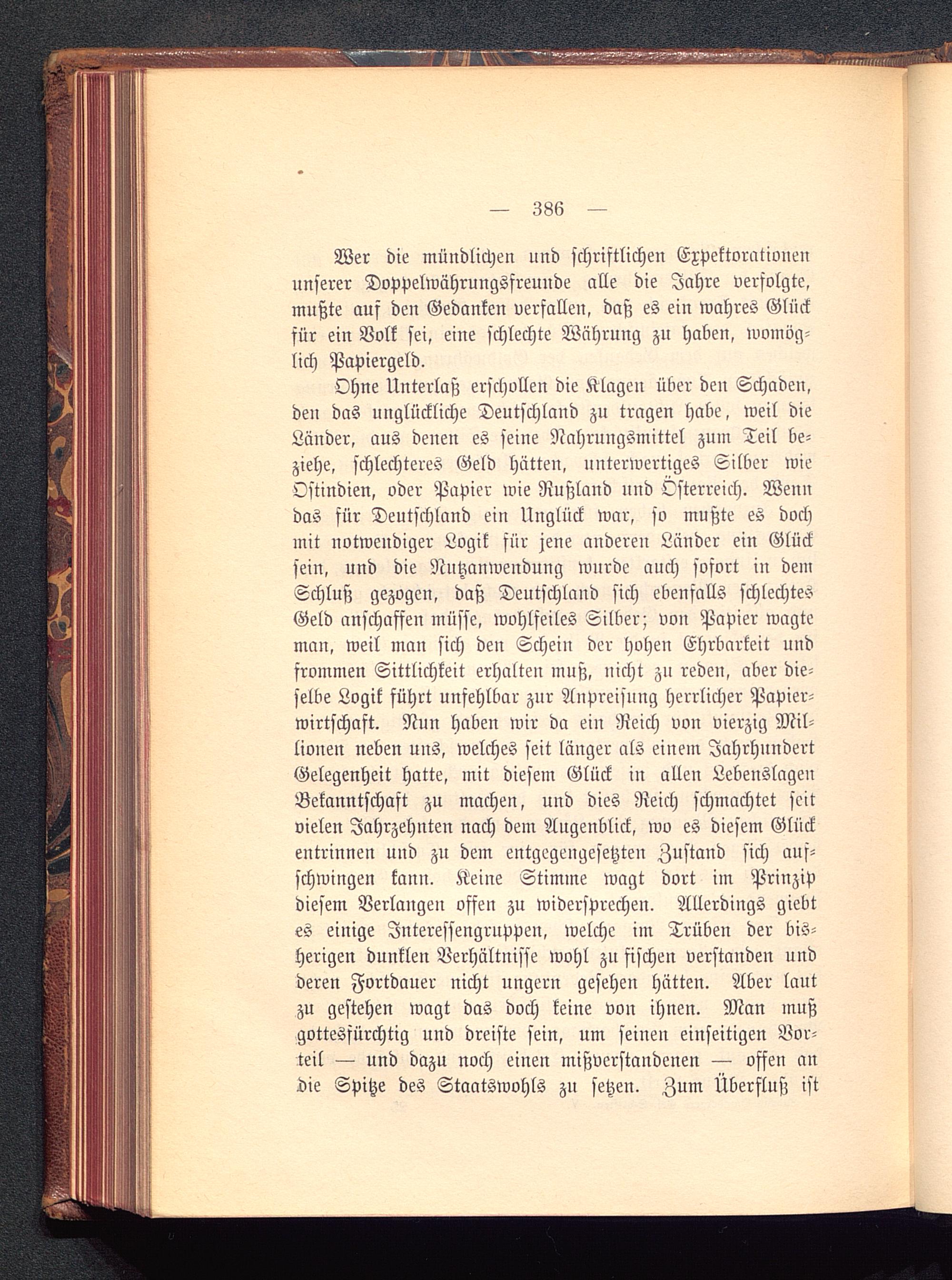 Wer die mündlichen nnd schriftlichen Expektorationenunserer Doppelwährungsfreunde alle die Jahre verfolgte,mußte auf den Gedanken verfallen, daß es ein wahres Glückfür ein Volk sei, eine schlechte Währung zu haben, womög-lich Papiergeld.