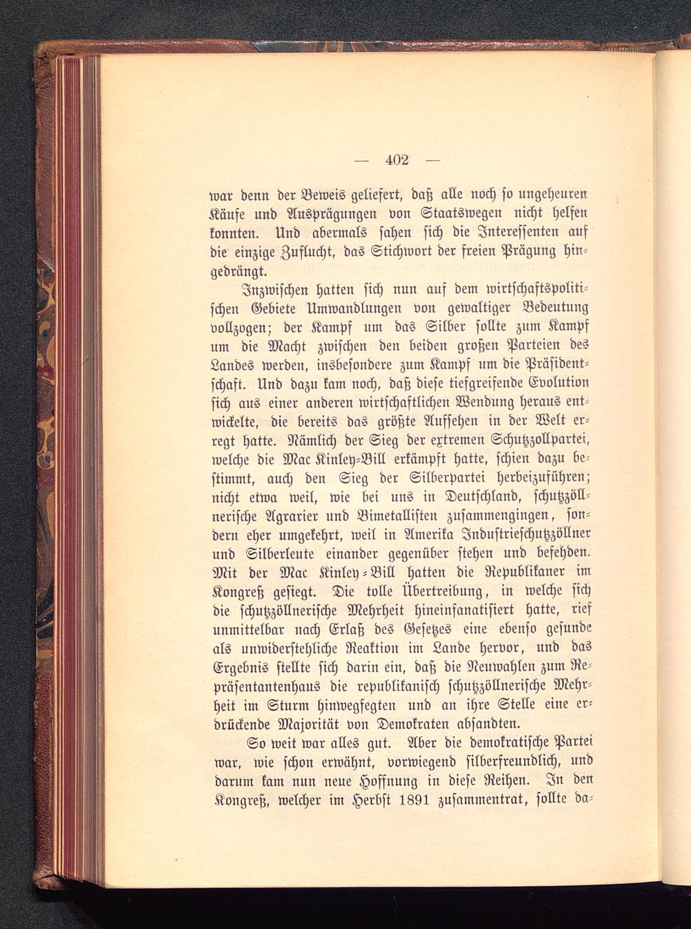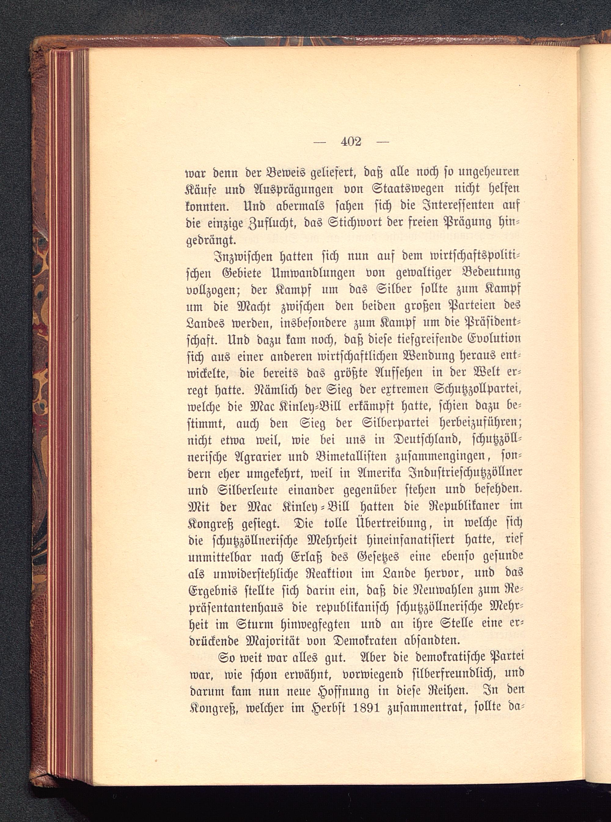 So weit war alles gut. Aber die demokratische Parterwar. wie schon erwähnt, vorwiegend silberfreundlich, unddarum kam nun neue Hoffnung in diese Reihen. In denKongreß, welcher im Herbst 1891 zusammentrat, sollte da-