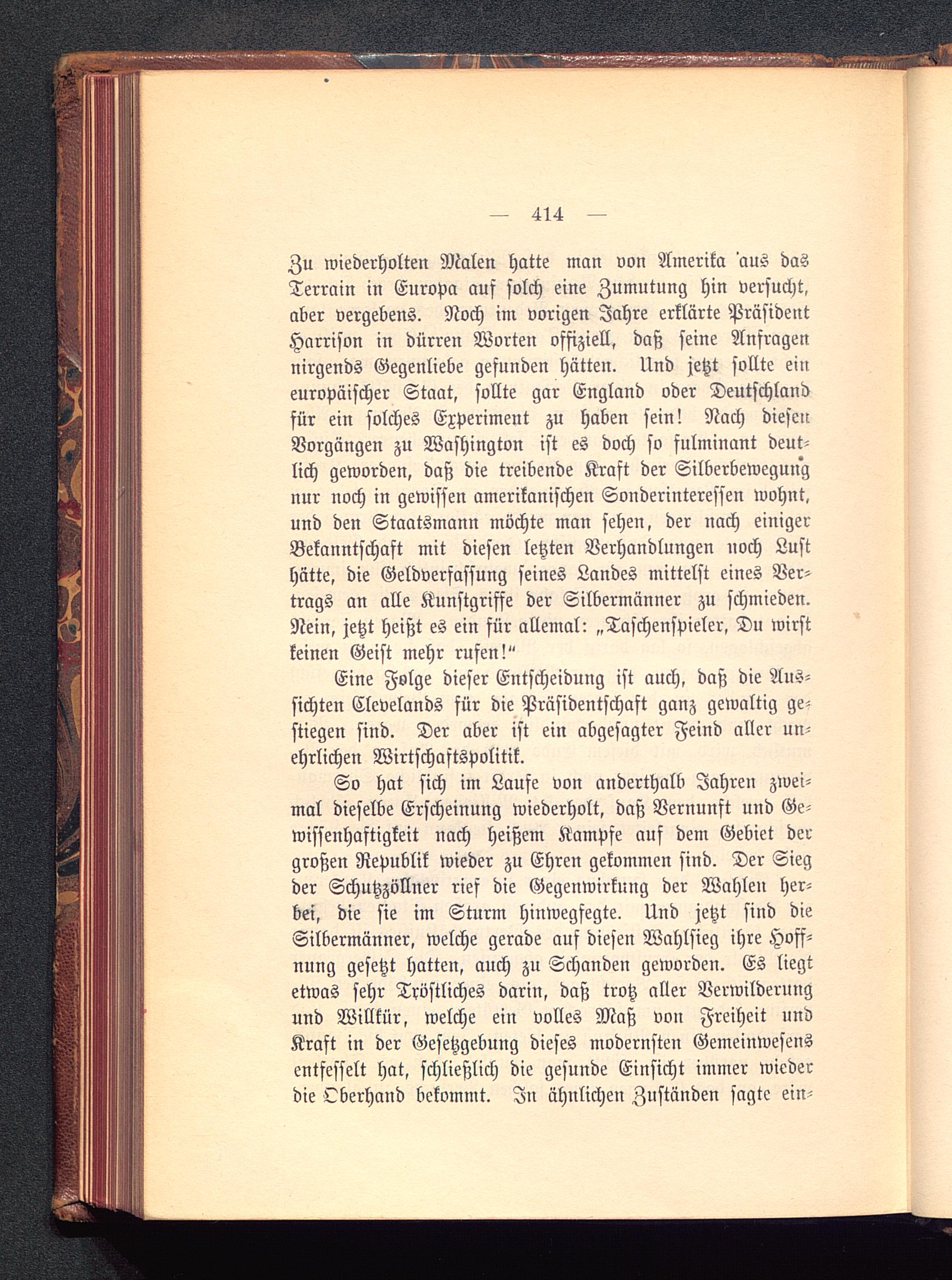 So hat sich im Laufe von anderthalb Jahren zwei-mal dieselbe Erscheinung wiederholt, daß Vernunft und Ge-wissenhaftigkeit nach heißem Kampfe auf dem Gebiet dergroßen Republik wieder zu Ehren gekommen sind. Der Siegder Schutzzöllner rief die Gegenwirkung der Wahlen her-bei, die sie im Sturm hinwegfegte. Und jetzt sind dieSilbermänner, welche gerade auf diesen Wahlsieg ihre Hoff-nung gesetzt hatten, auch zu Schanden geworden. Es liegtetwas sehr Tröstliches darin, daß trotz aller Verwilderungund Willkür, welche ein volles Maß von Freiheit undKraft in der Gesetzgebung dieses modernsten Gemeinwesensentfesselt hat, schließlich die gesunde Einsicht immer wiederdie Oberhand bekommt. In ähnlichen Zuständen sagte ein-