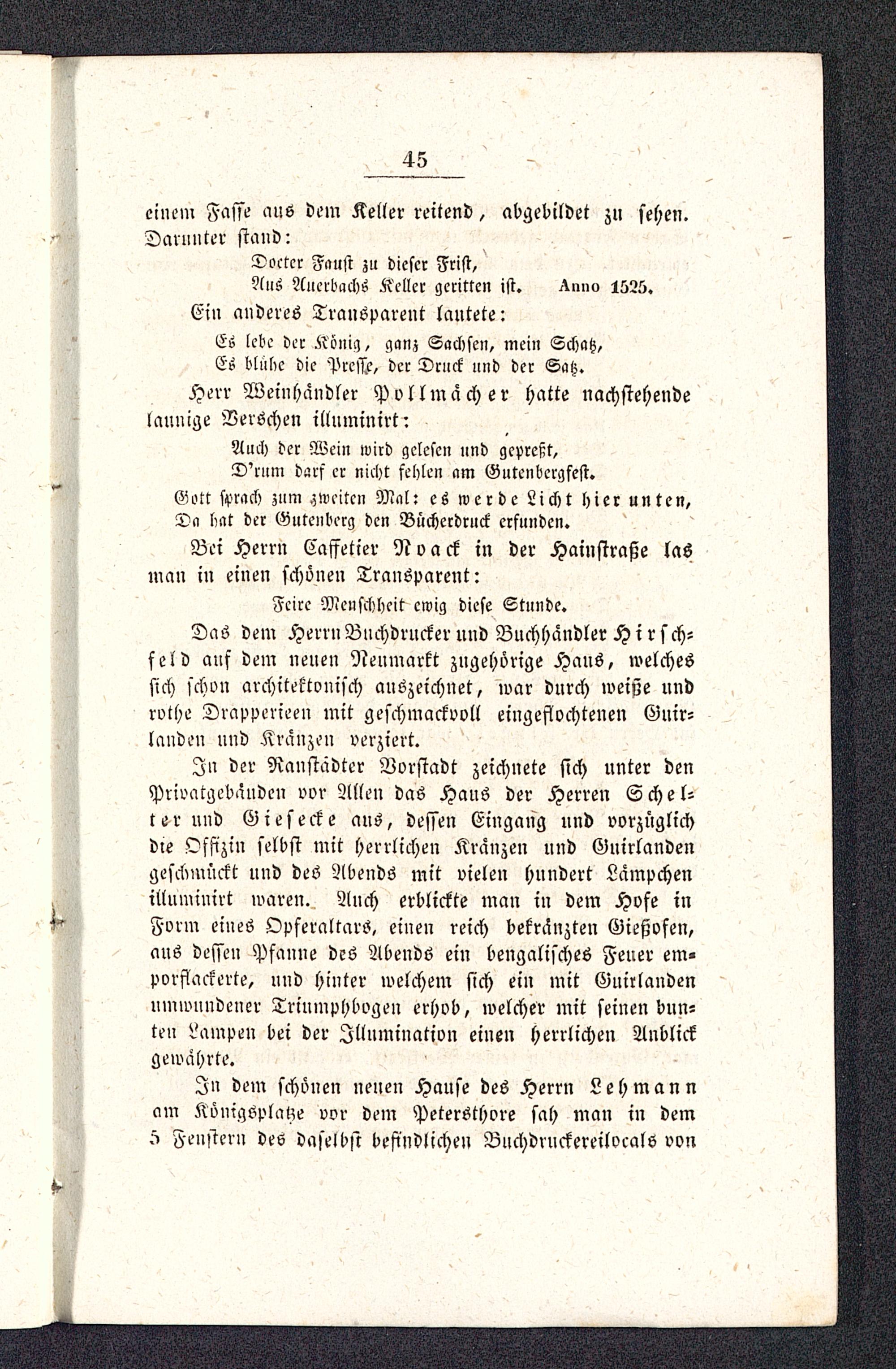 Auch der Wein wird gelesen und gepreßt,D'rum darf er nicht fehle» am Gutenbcrgfest.Gett sprach zum zweiten Mal: es werde Licht hier unten,Da hat der Gutenberg den Büchcrdruck erfunden.
