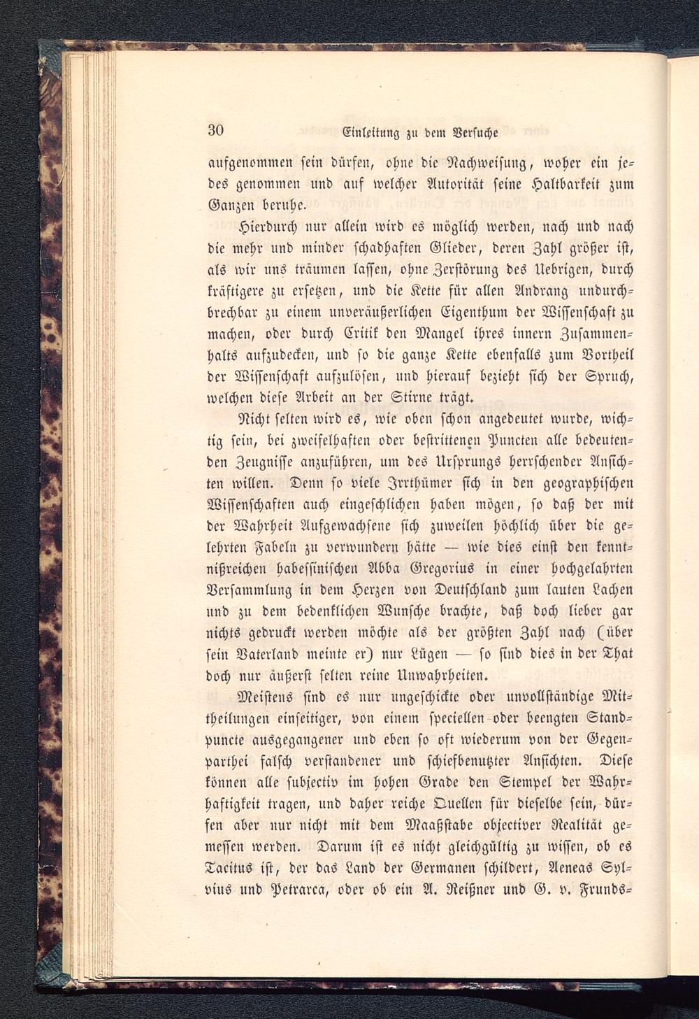 Nicht selten wird es, wie oben schon angedeutet wurde, wich-tig sein, bei zweifelhaften oder bestrittenen Puncten alle bedeuten-den Zeugnisse anzuführen, um des Ursprungs herrschender Ansich-ten willen. Denn so viele Irrthümer sich in den geographischenWissenschaften auch eingeschlichen haben mögen, so daß der mitder Wahrheit Aufgewachsene sich zuweilen höchlich über die ge-lehrten Fabeln zu verwundern hätte — wie dies einst den kennt-nißreichen Habessinischeu Abba Gregorius in einer hochgelahrtenVersammlung in dem Herzen von Deutschland zum lauten Lachenund zu dem bedenklichen Wunsche brachte, daß doch lieber garnichts gedruckt werden möchte als der größten Zahl nach (überseiu Vaterland meinte er) nur Lügen — so sind dies in der Thatdoch nur äußerst selten reine Unwahrheiten.