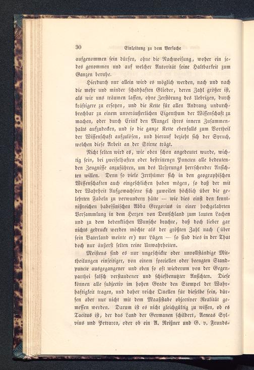 Meistens sind es nur ungeschickte oder unvollständige Mit-theilungen einseitiger, von einem speciellen oder beengten Stand-puncte ausgegangener und eben so oft wiederum von der Gegen-parthei falsch verstandener und schiefbenutztcr Ansichten. Diesekönnen alle subjectiv im hohen Grade den Stempel der Wahr-haftigkeit tragen, und daher reiche Quellen für dieselbe sein, dür-fen aber nur nicht mit dem Maaßstabe objectiver Realität ge-messen werden. Darum ist es nicht gleichgültig zu wissen, ob esTacitus ist, der das Land der Germanen schildert, Aeneas Syl-vius und Petrarca, oder ob ein A. Reißncr und G. v. Frunds-