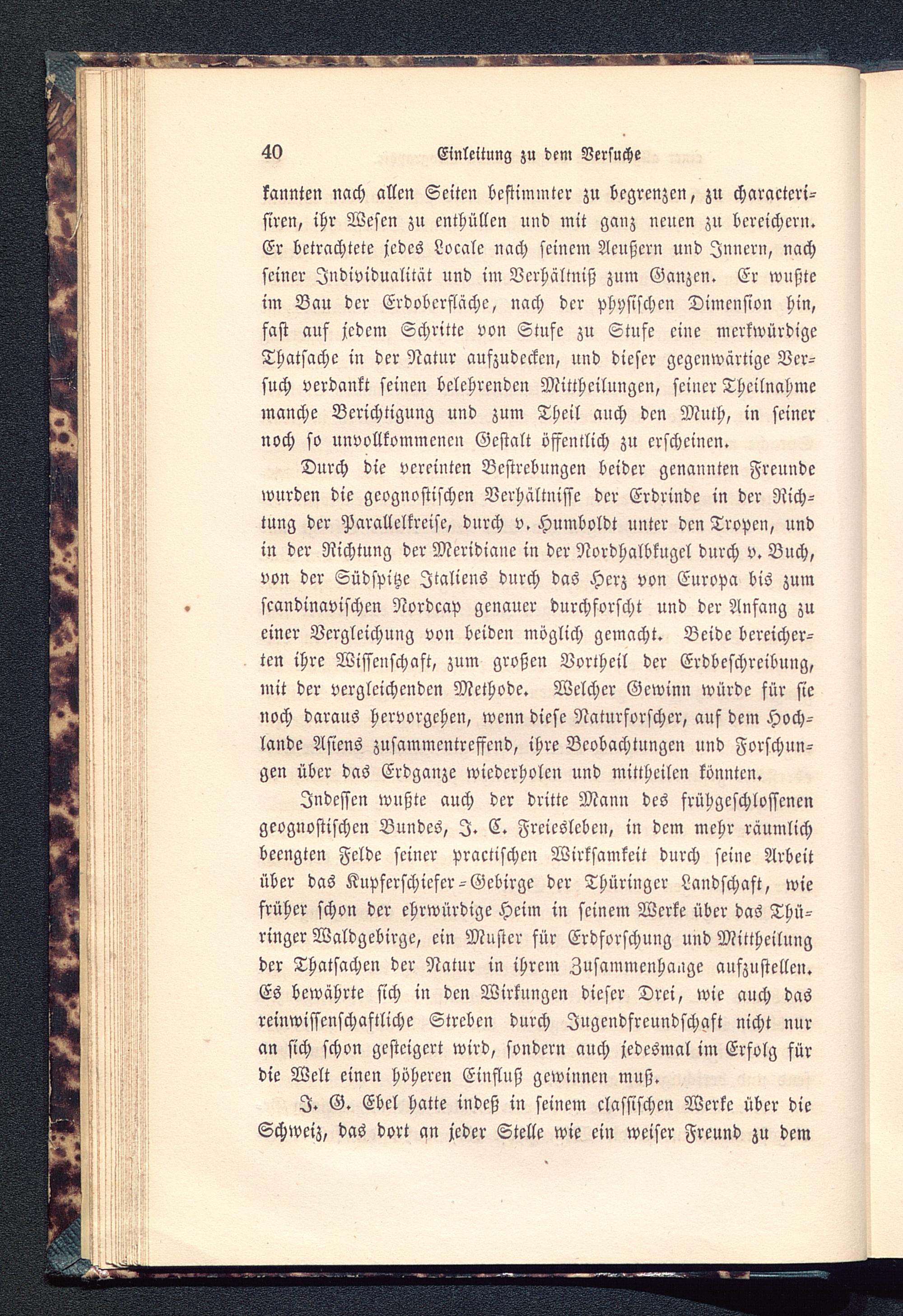 kannten nach allen Seiten bestimmter zu begrenzen, zu characteri-siren, ihr Wesen zu enthüllen und mit ganz neuen zu bereichern.Er betrachtete jedes Locale nach seinem Aeußcrn und Innern, nachseiner Individualität und im Verhältniß zum Ganzen. Er wußteim Bau der Erdoberfläche, nach der physischen Dimension hin,fast auf jedem Schritte von Stufe zu Stufe eine merkwürdigeThatsache in der Natur aufzudecken, und dieser gegenwärtige Ver-such verdankt seinen belehrenden Mittheilungen, seiner Theilnahmemanche Berichtigung und zum Theil auch den Muth, in seinernoch so unvollkommenen Gestalt öffentlich zu erscheinen.