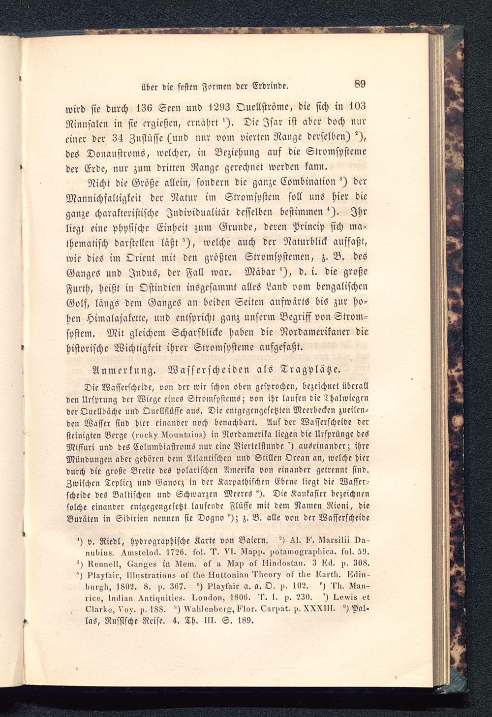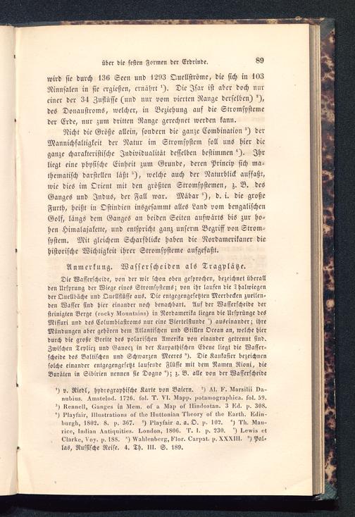 Nicht die Größe allein, sondern die ganze Combination °) derMannichfaltigkeit der Natur im Stromsystcm soll uns hier dieganze charakteristische Individualität desselben bestimmen ^). Ihrliegt eine Physische Einheit zum Grunde, deren Princip sich ma-thematisch darstellen läßt '), welche auch der Naturblick auffaßt,wie dies im Orient mit den größten Stromsystemen, z. B. desGanges und Indus, der Fall war. Mäbar °), d. i. die großeFurth, heißt iu Ostindien insgesammt alles Land vom bengalischenGolf, längs dem Ganges an beiden Seiten aufwärts bis zur ho-hen Himalajakettc, und entspricht ganz unserm Begriff von Strom-system. Mit gleichem Scharfblicke haben die Nordamerikaner diehistorische Wichtigkeit ihrer Stromsysteme aufgefaßt.