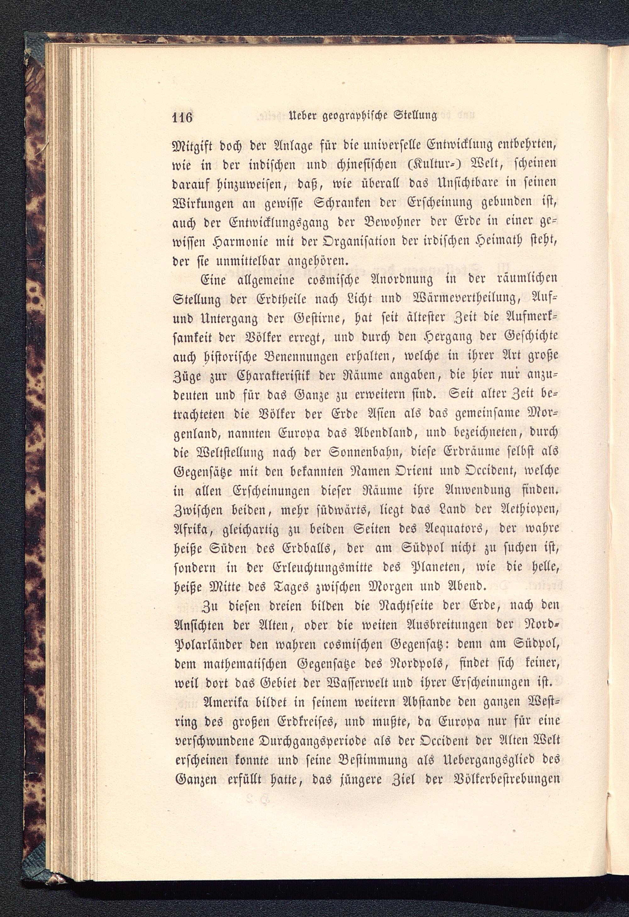 Amerika bildet in seinem weitern Abstände den ganzen West-ring des großen Erdkreises, und mußte, da Europa nur für eineverschwundene Durchgangsperiode als der Occident der Alten Welterscheinen konnte und seine Bestimmung als Uebcrgangsglied desGanzen erfüllt hatte, das jüngere Ziel der Völkerbestrebungen