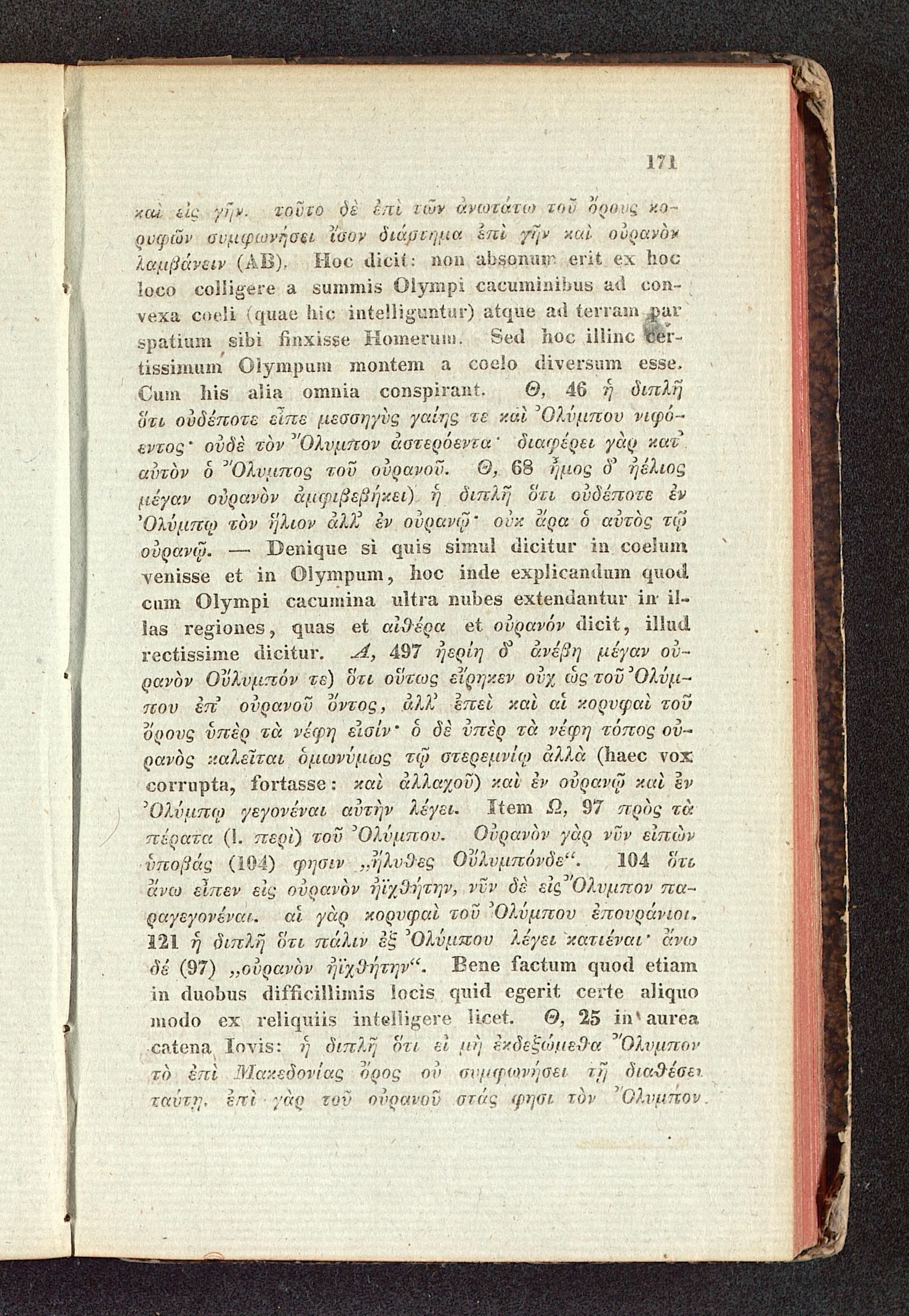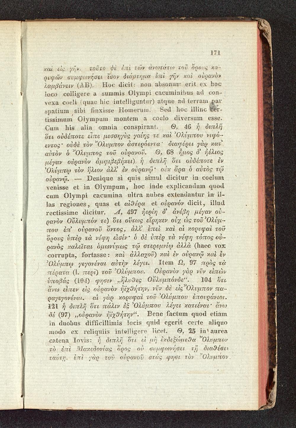 xcu ug yffifi zovco de ini cwv «cwra») iot> oouvg ho-QVtpmv ovft(ptovi)oei iooy didpci/fia ini y/jv xai ovQavbv?.aft(Sdvetv (AB). Hoc Uicif: non absonuin erit ex hocloco colligere a summis Olynipi cacuminibus ad con- ;vexa coeli \ quae hic inteiliguntur) atque ad terram #arspatium sibi finxisge Homeruui. Setl hoc illinc TOr-tissimum Oiympun» montem a coelo diversum esse.Cum liis alia omnia conspirant. 0, 46 vy t)tn?.Tjlizc oidinoze eine fteoot]yiig yair t g ze y.ai ^0?,iftnov vttpo-evzog' oide zbv "OXyfiftov aozsoosvca' diafpioct yc<Q v.azavzov 6 "OXvanog zov ovgctvov. Q, 68 tfftog d* rjeXiosfiiyav ovQavbv aficpifSejjifxei) r) din?J] occ oidinoze b>'OXvfiTcq) %bv ijXtov «/IX 3 ev ovQavfr ovx ixQa 6 aizbg %(')ovqccvw. — Benique si quis simul dicitur in coeiumvenisse et in Olympum, hoc inde explicanduin quotlcum Olympi cacumina ultra nubes extendantur in il-las regiones, quas et al&SQa et oliQavov dicit, ilJudrectissime dicitur. ^i, 497 rfeqir) cf d.vifii] ftiyav oi~Qavbv OvXvftTibv %e) ozc ovzcog eYgry/.ev oiy aig zov '0?.vft~tcov en oiiQavov ovzog, aX?l enei y.ai ctl xOQVtpai zovooovg vtceq %a virpi] etoiv' 6 di insQ %ct vitprj zbnog ov~Qavbg ;'.a?.eizat bfuovificog %({> ozeQeftvio) StXXct (haec voxcorrupta, fortasse: xai d?J.ayoTi) y.ai iv oiiQavtT) xal ev'Ol.viiTcq) yeyovivat aizt)v ?Jyet. Item £2, 97 nvQog rtkTctQaza (1. TceQt) %ov 'OXvfinov. Oiiqcivov yixQ vvv einvjvvno(idg (104) tprjojv ,,rj?.vDeg Ov?>vftn6vde". 104 ozcavco einev eig ovQavbv i]iyDi]Z)]v, vvv Se etg O?.vftnov na~Qctyeyovivc.t. al yctQ xoQvcpai zov 0?.vfinov enovQaviot.121 f] dcnXrj oti ndXtv it; ^OXvftixov Xeyec xazievcti " avioSe (97) „ovQavbv ifiyV-rjzrjv". Eene factum quod etiamin duobus difficillimis locis quid egerit certe aliquomodo ex reliquiis intelligere licet. Q, 25 ih*aureac.itena Iovis: t) diTcXrj ozt ei ///) ixde^toiteDa "OkyfiTiovzb eni Maxedoviag oQog oi (jv/icptovijoet rf/ dia&eonxavz)], erti yctQ tvv oiQctvov ocag tptfor. rbv ■.'OkvflTtOv