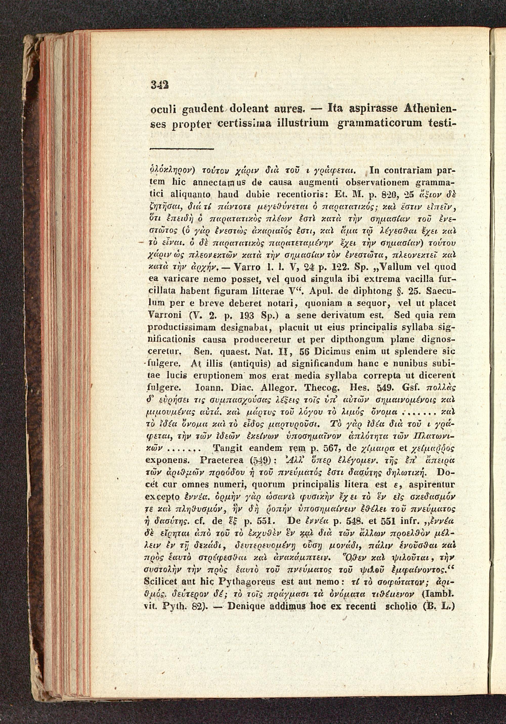 exponens. Praeterea (549): \4XJl ZneQ iXiyofiev. iijs ln antiQatcov cxqiOlicov nnooSov t) tov nvevftaios ion SaavTrjS Srjl.coiixrj. Do-cet cur omnes numeri, quorum principalis litera est e, aspirenturexcepto ivviu. OQ/ur)v yuQ coaavel if,voixr)v eyet to ev eis ay.e6aaf.iovTe xcci nXi]'Jv0ft6v, ijV Sij QOntjV vnoar]fia(vecv ifriXei tov nvevftaiost) Sctaviijs. cf. de || p. 551. De ivvia p. 548. et 551 infr. „ivviaSe etQrjiat itnb tov to IxyvOev tv xtxl Sid tcov ciXXcov nQoeX&bv ftiX-Xeiv iv t\> StxitSt, SevTtntvoftivy ovoij ttovdSi, nuXtv evovoOut y.ainQos eavTo aiQicpeaOut xccl avuxdunieiv. "Q3-ev xal iptXoviat, t>)vavaioXrjv ti)v nnbs iccvib tov nvevuciios tov \pc%»v iftcpu(vovTOs. (tScilicet aiU hic Pythagoreus est aut nemo : r( to aocpdnccTov; uqi-Sfio.;. SevieQOV Si; to toTs nQctyftctoi id ovoftaia ztO-iuevov (Iambl.vit. Pyth. 82). — Denique addimus hoc ex recenti scholio (iB. L.)