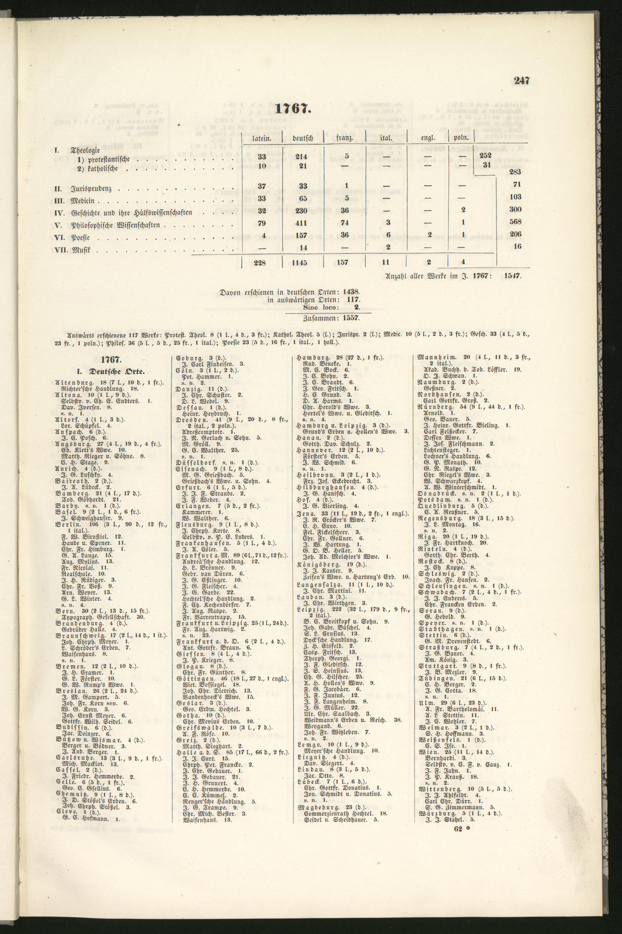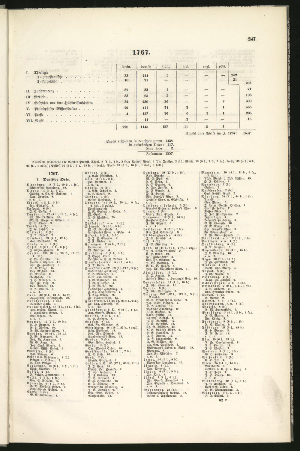 Auswärts erschienene H7 Werke: Protest. Theol. 8 (i l., 4 d., 3 fr.); Kathol. Theol. 5 (l.); Jurispr. S (l.); Medic. I» (5 l., 2 d., 3 fr.); Gesch. 33 (4 l., 5 d.,23 fr., i poln.); Philos. 3« (5 l., 5 d., 25 fr., I ital.); Poesie 23 (S d., 16 fr., i ital., i holl.).