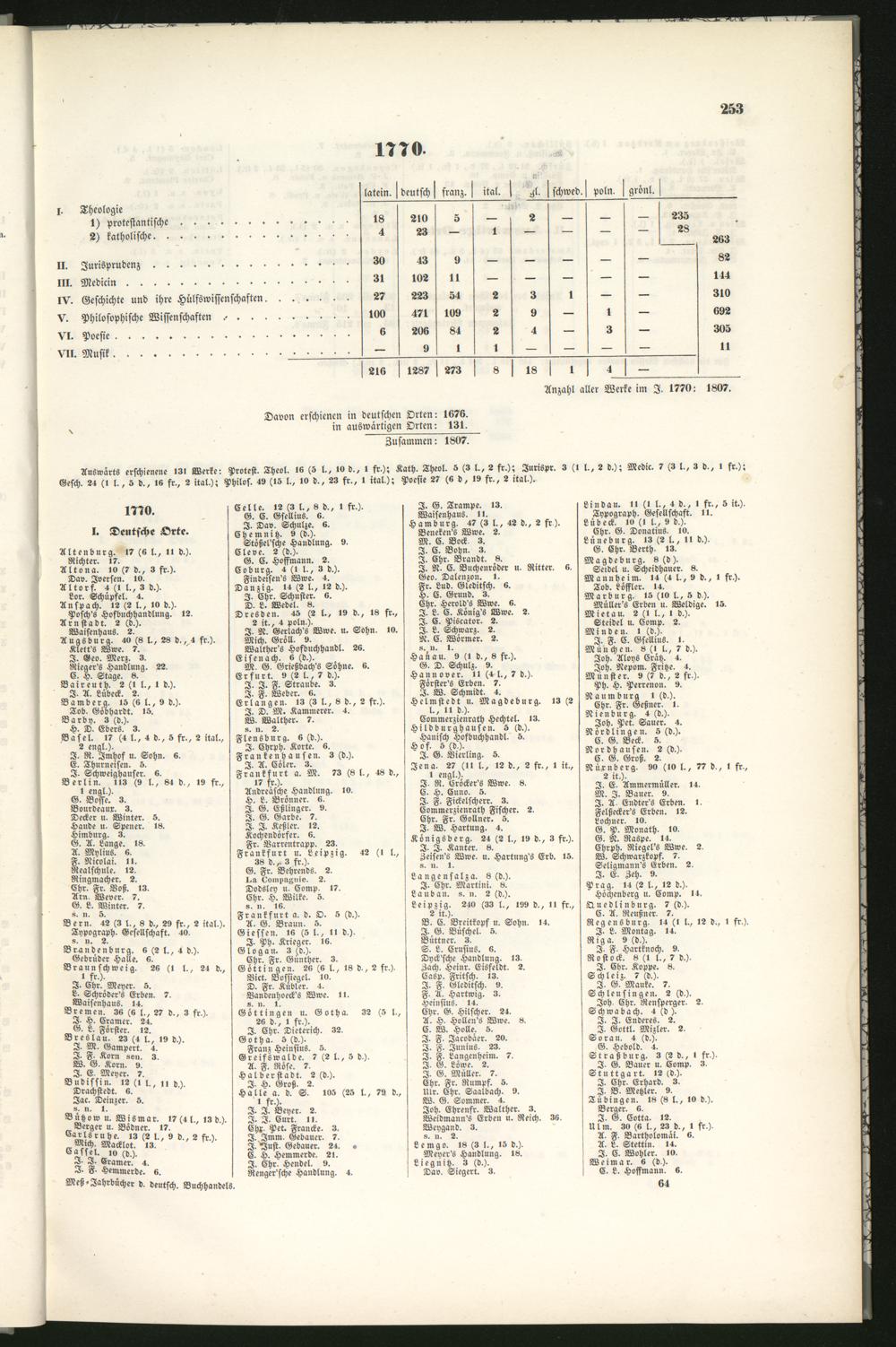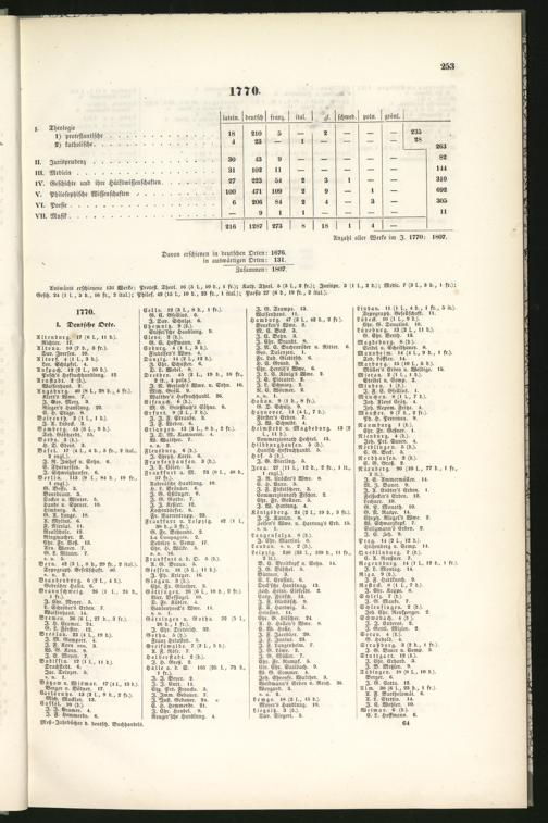 Auswärts erschienene 131 Werke: Protest. Theol. l« (5 l., I« d., i fr.); Kath. Theol. s (3 l., 2 fr.); Jurispr. 3 (l l., 2 d.); Medic. 7 (3 l., 3 d., I fr.);Gesch. 24 (l l., s d., I« fr., 2 ital.); Philos. 49 (15 l., 10 d., 23 fr., 1 ital.); Poesie 27 (« d, 19 fr., 2 ital.).