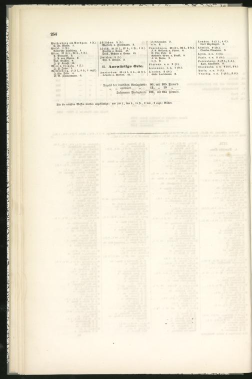 Anzahl der deutschen Verlagsorte: 90, mit 205 Firma's„ „ auswärt. „ 13, „ 10 „