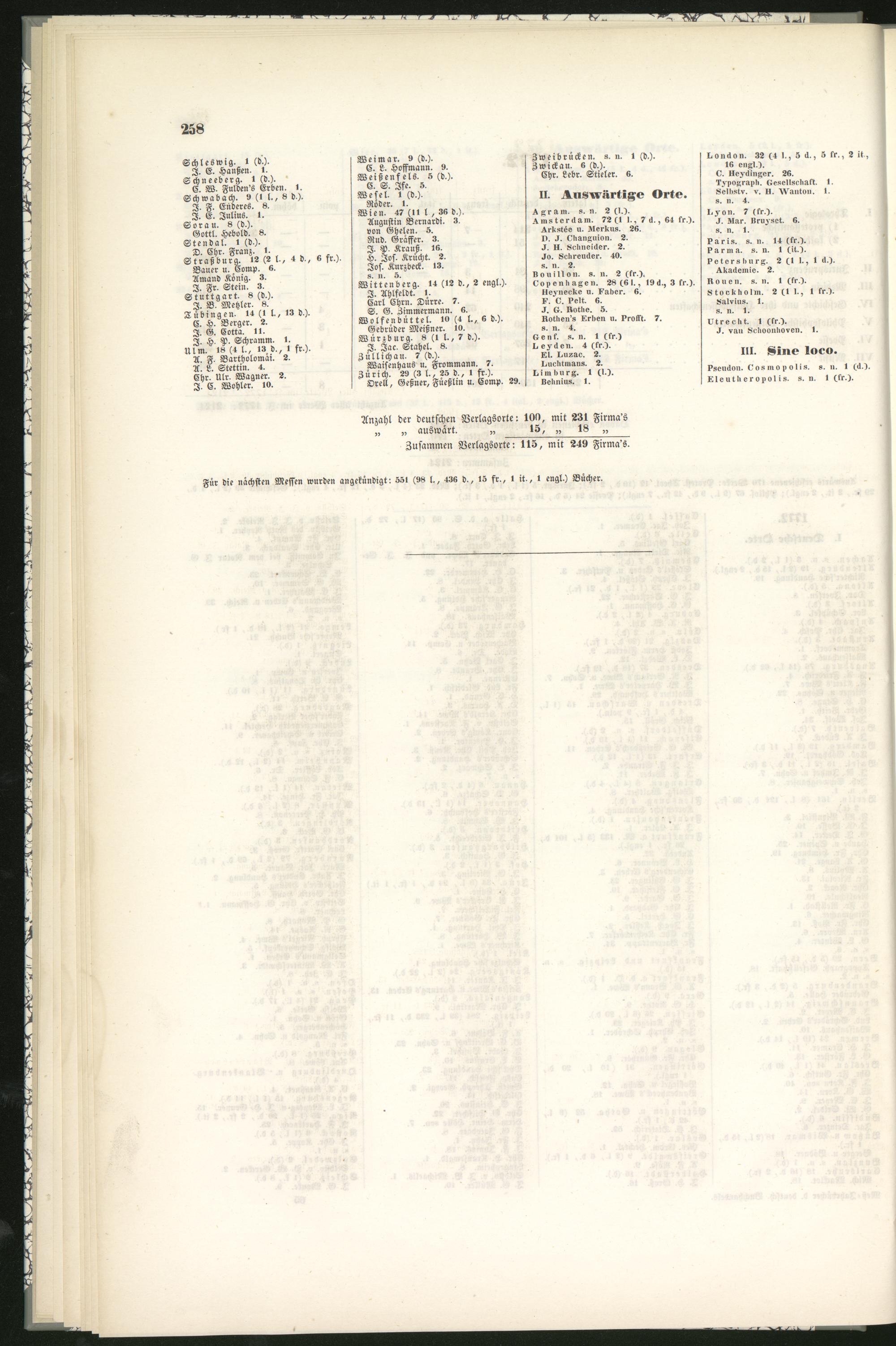 Anzahl der deutschen Verlagsorte: 100, mit S31 Firma's„ „ auswärt. „ 15, „ 18 „