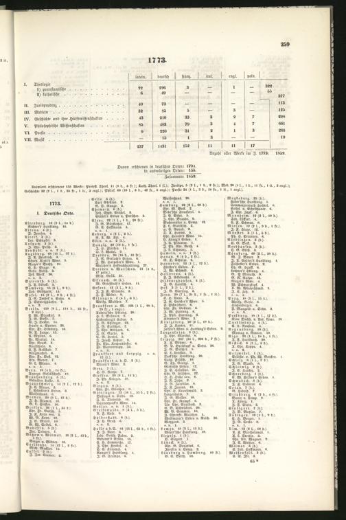 Auswärts erschienene ,55 Werke: Protest. Theol. II (8 d., 3 fr); Kath. Theol. l (l.); Jurispr. 5 (2 l., i d., 2 fr.); Med. 2» (4 l., id., iiGeschichte 32 (2 l., i d., 25 fr., i it., 3 engl.); Philos. 60 (10 l-, 3 d., 42 fr., s engt.); Poesie 24 (l l., 3 d., 18 fr., l it., I engl.).