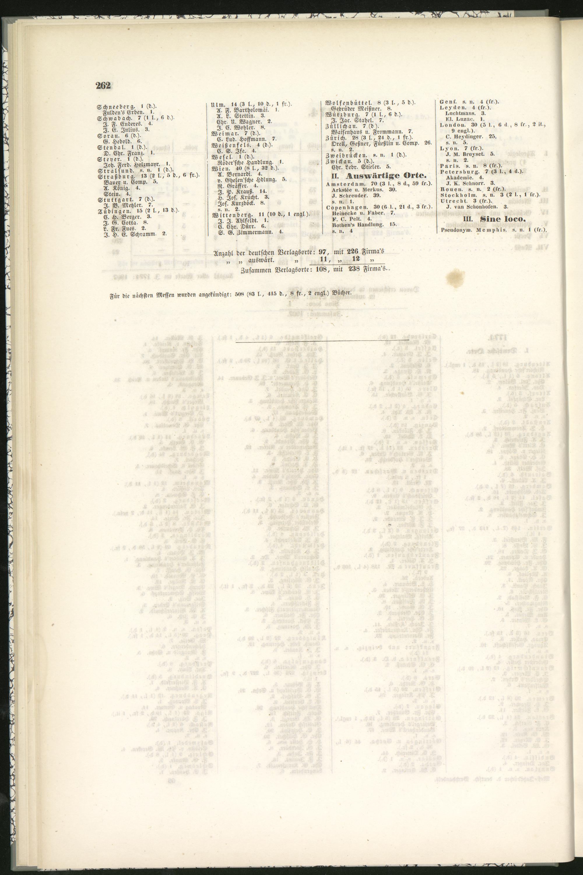 Anzahl der deutschen Verlagsorte: 97, mit 226 Firma's„ „ auswart. „ II,